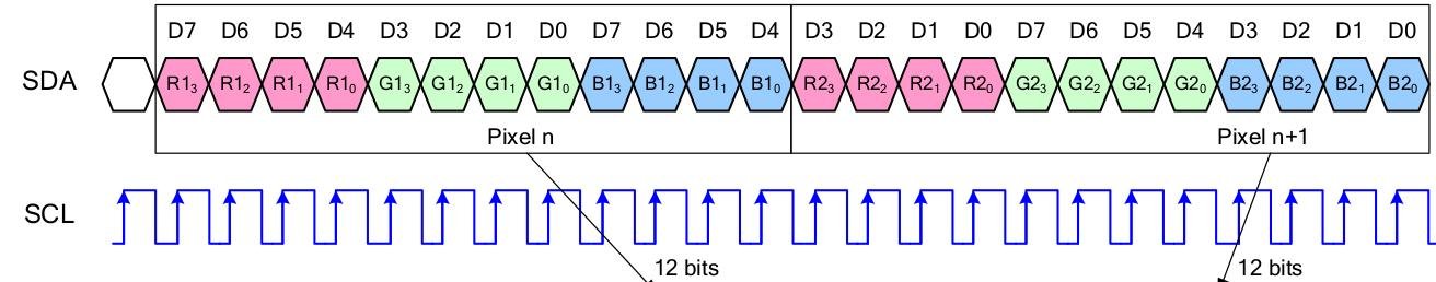 Fortunately, there’s a clever trick, although it costs a little bit of image quality. Instead of running 18 bits per pixel, the ST7798 can run in a 12 bit per pixel mode (i.e., four bits each for red, green and blue). This reduces the theoretical SPI bandwidth to 41 Mbit/s. Much safer. Cutting this corner also makes the RP2040 color code considerably faster.