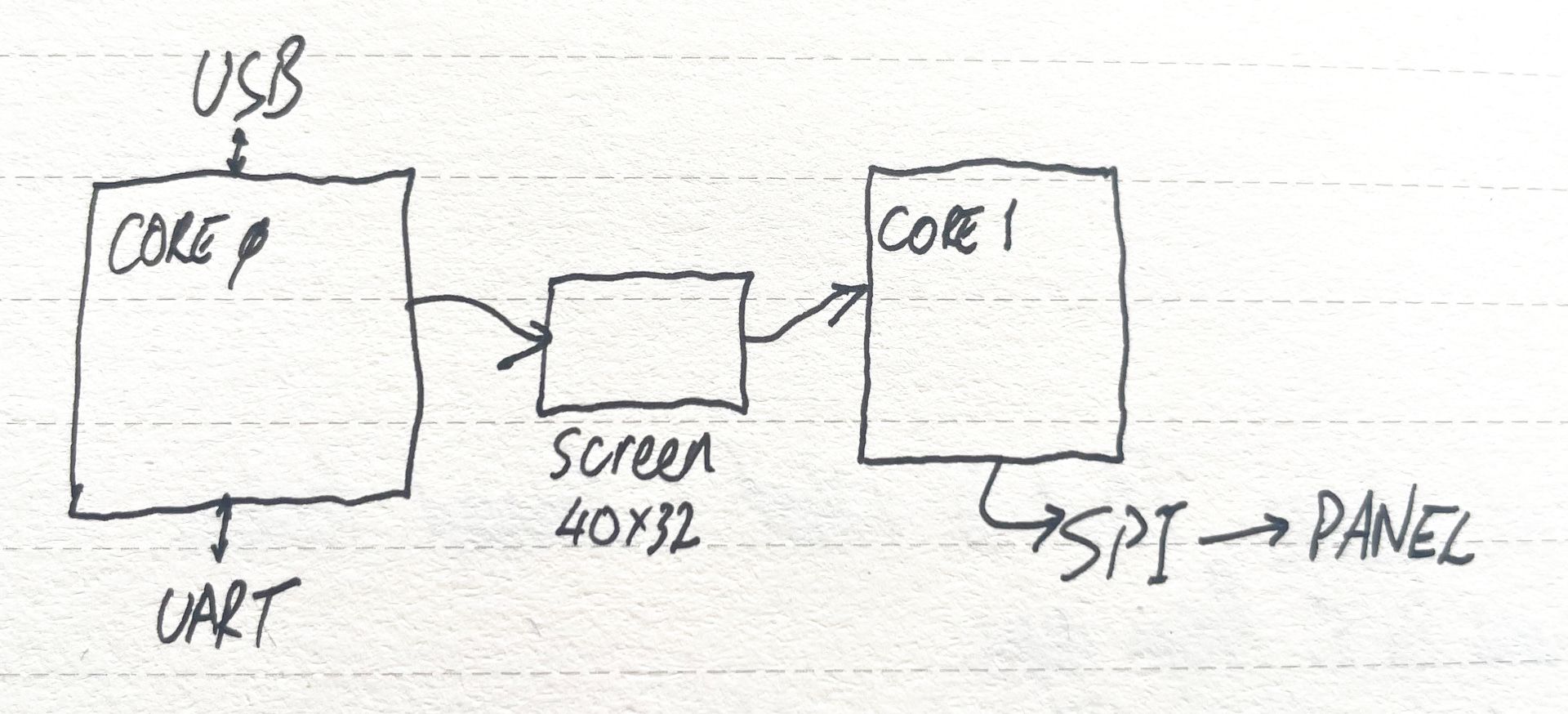 RP2040 is a true dual-core microcontroller. This is what makes TermDriver possible. One core handles the communications between USB and the UART and updates a block of memory that represents the screen as an array of characters and colors.