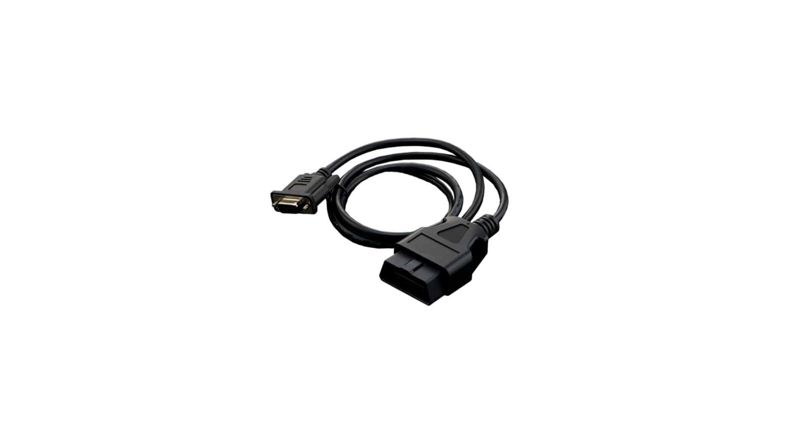 One 110-cm long cable weighing 170 g with an OBD II receptacle on one end and a DB9 receptacle on the other end.