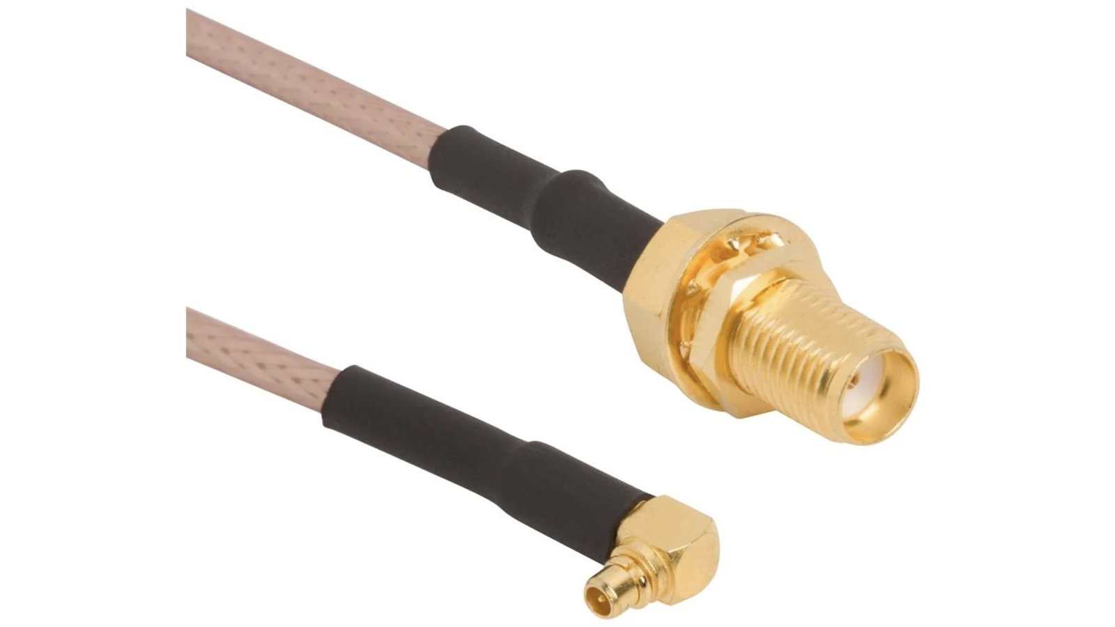 A Hirose U.FL to SMA (jack) bulkhead straight connector with a 1.32 mm diameter cable. Less than -2 dB cable insertion loss up to 6 GHz. Both connectors are gold-plated brass and the cable conductor is silver-coated copper.