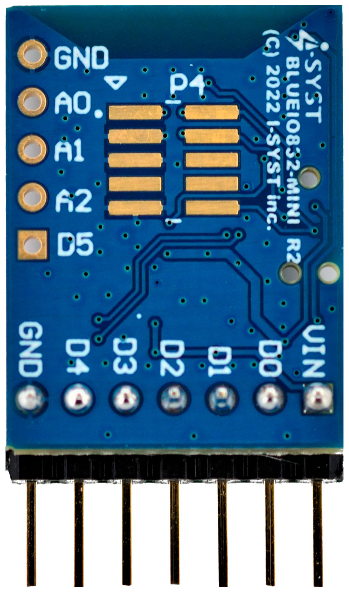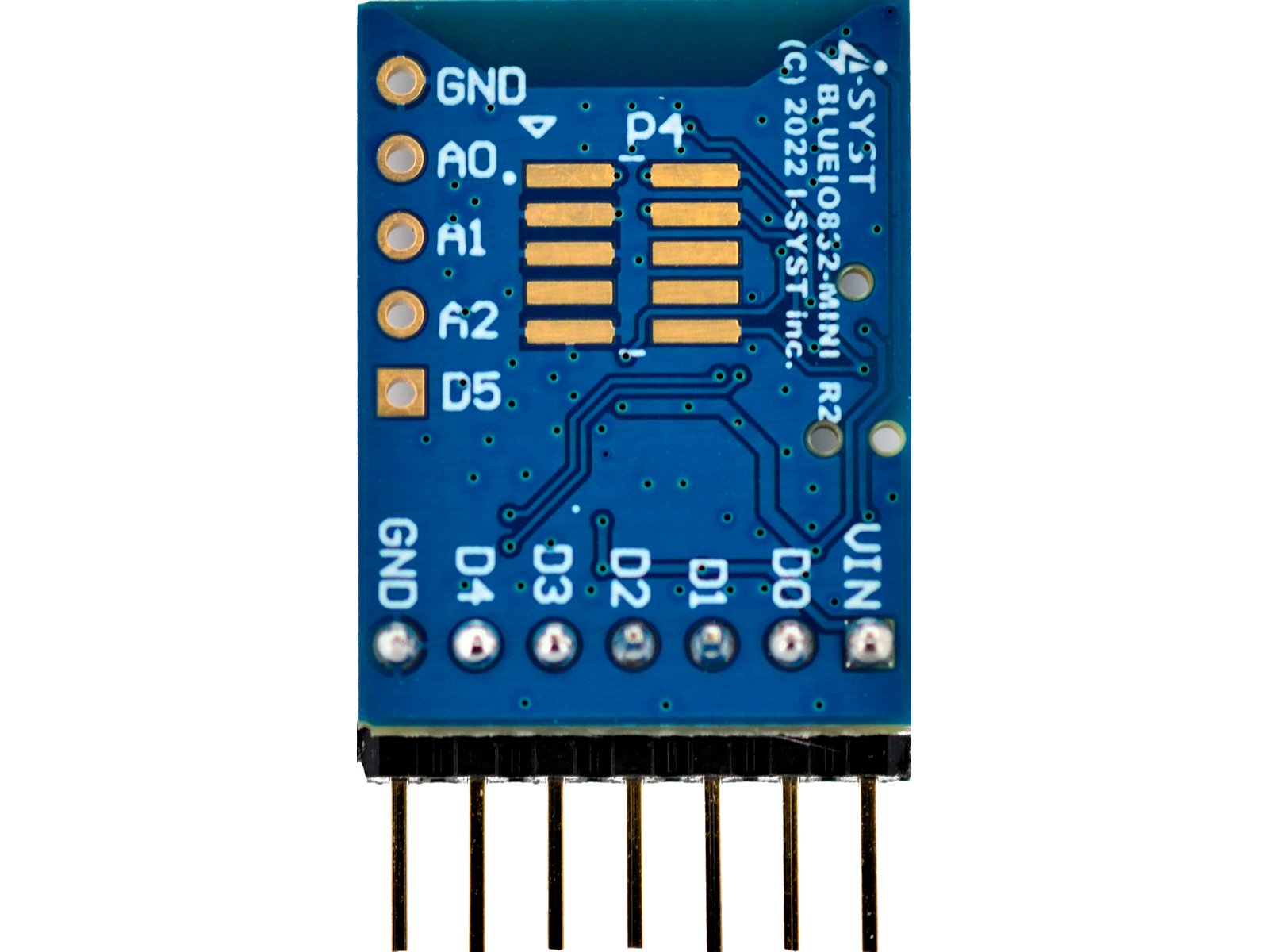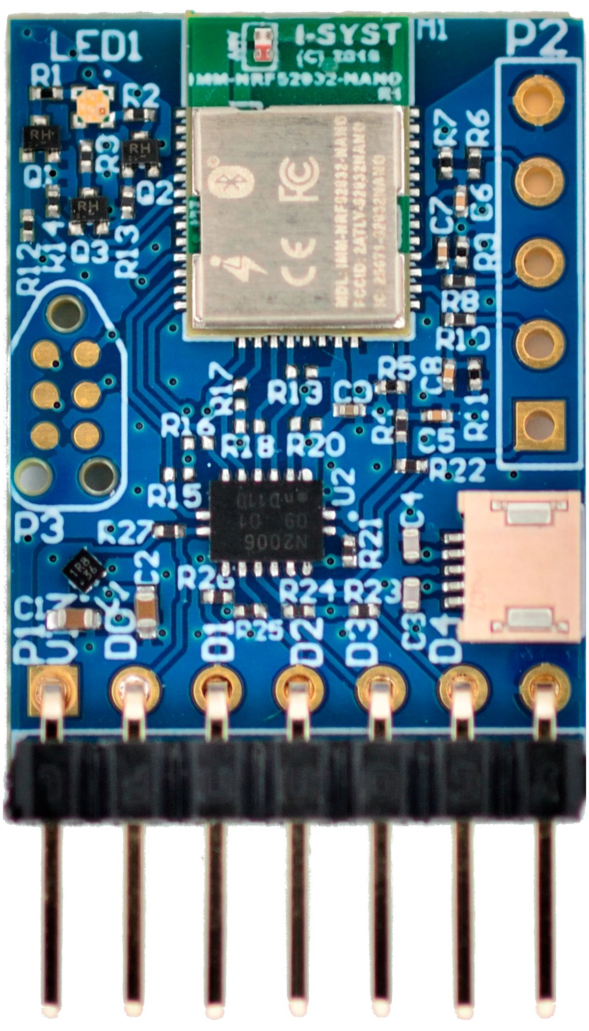 One BlueIO832-Mini module, powered by Blyst Nano (nRF52832 microcontroller + BLE)