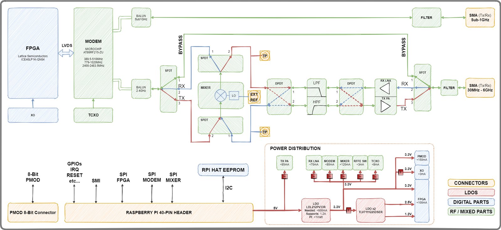 On the software side, Raspberry Pi’s high-level APIs like Soapy / GNU Radio, and Jupyter notebooks are fully supported, through which the HAT’s complete feature-set can be accessed.