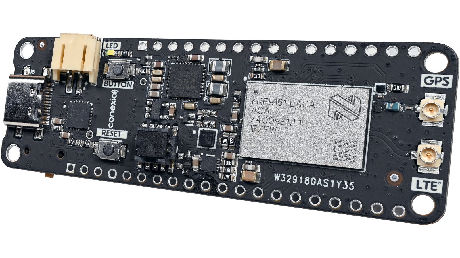 "Nordic nRF9161 SiP in a Feather form factor with data included."