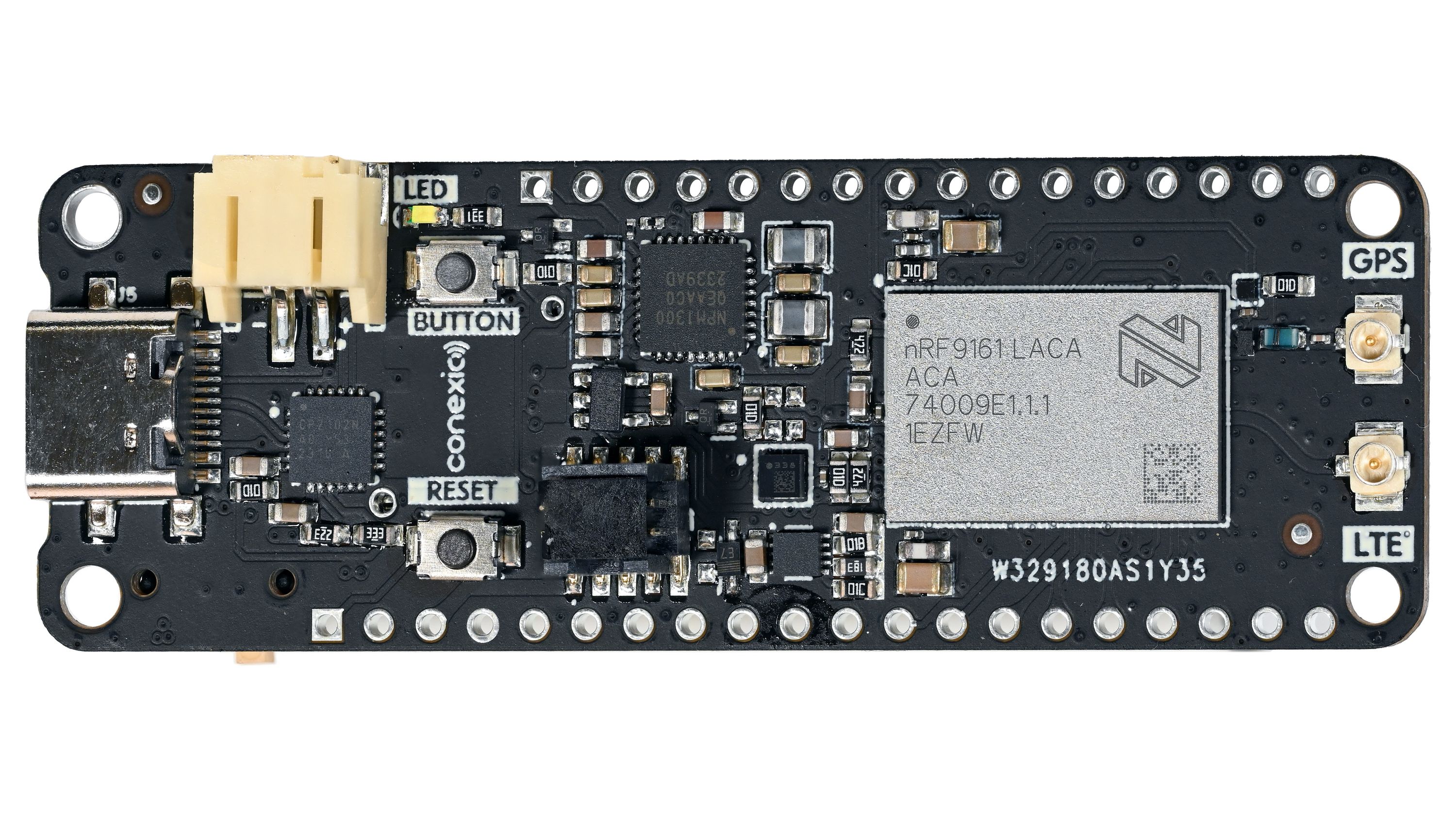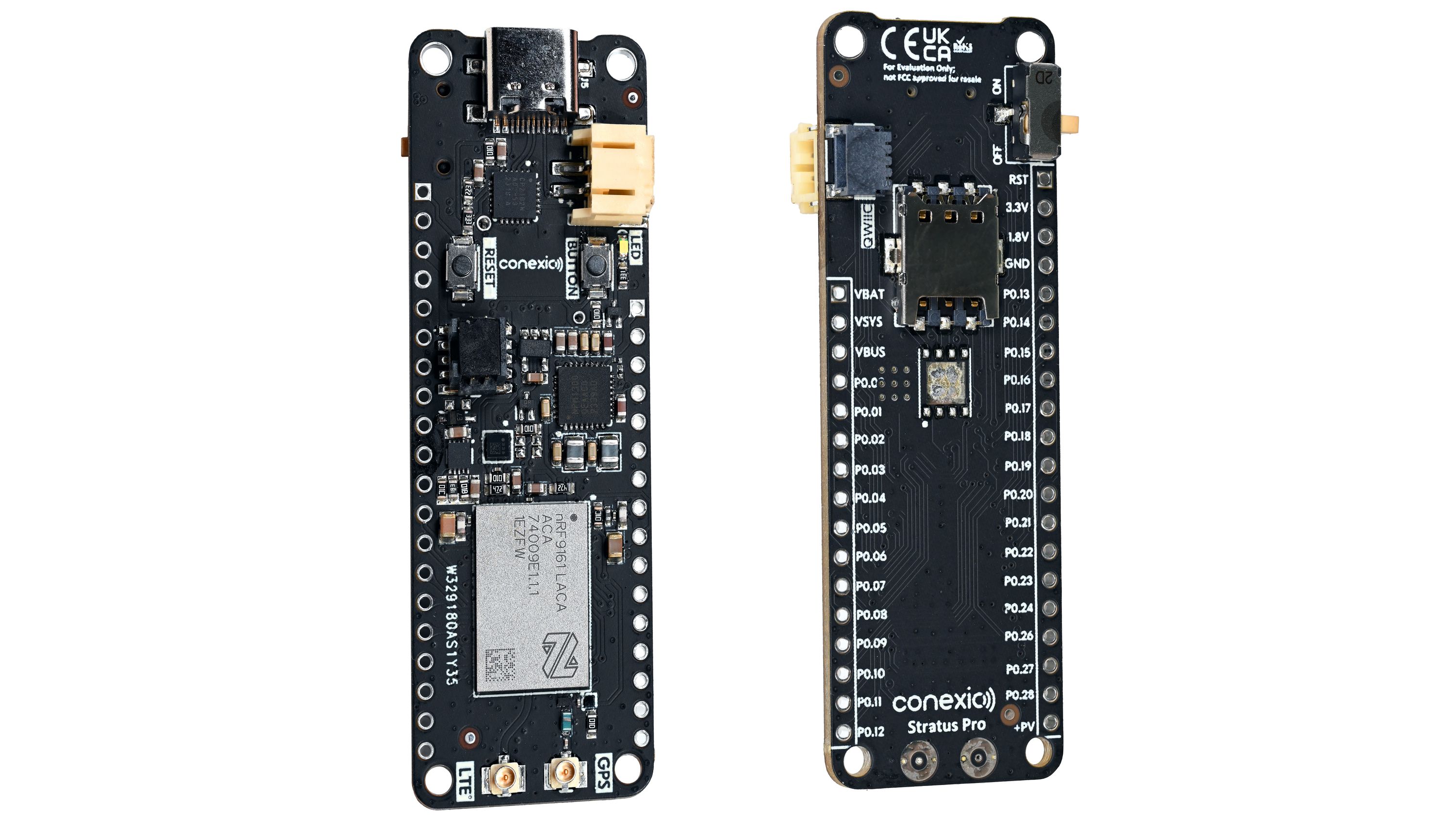 Stratus Pro hardware was refined gradually over multiple pre-production revisions. These revisions were thoroughly validated and used by a number of pre-production testers and open-source contributors before becoming available to consumers. We have developed working relationships with several contract manufacturers in China, and we trust them to manufacture and assemble Stratus Pro electronics. We work closely with a number of distributors and vendors—including Nordic Semiconductor, who designed the main nRF9161 SiP module and nPM1300 PMIC, and Symmetry Electronics, to accelerate component acquisition to manufacture Conexio Stratus Pro consistently and with the highest level of quality.