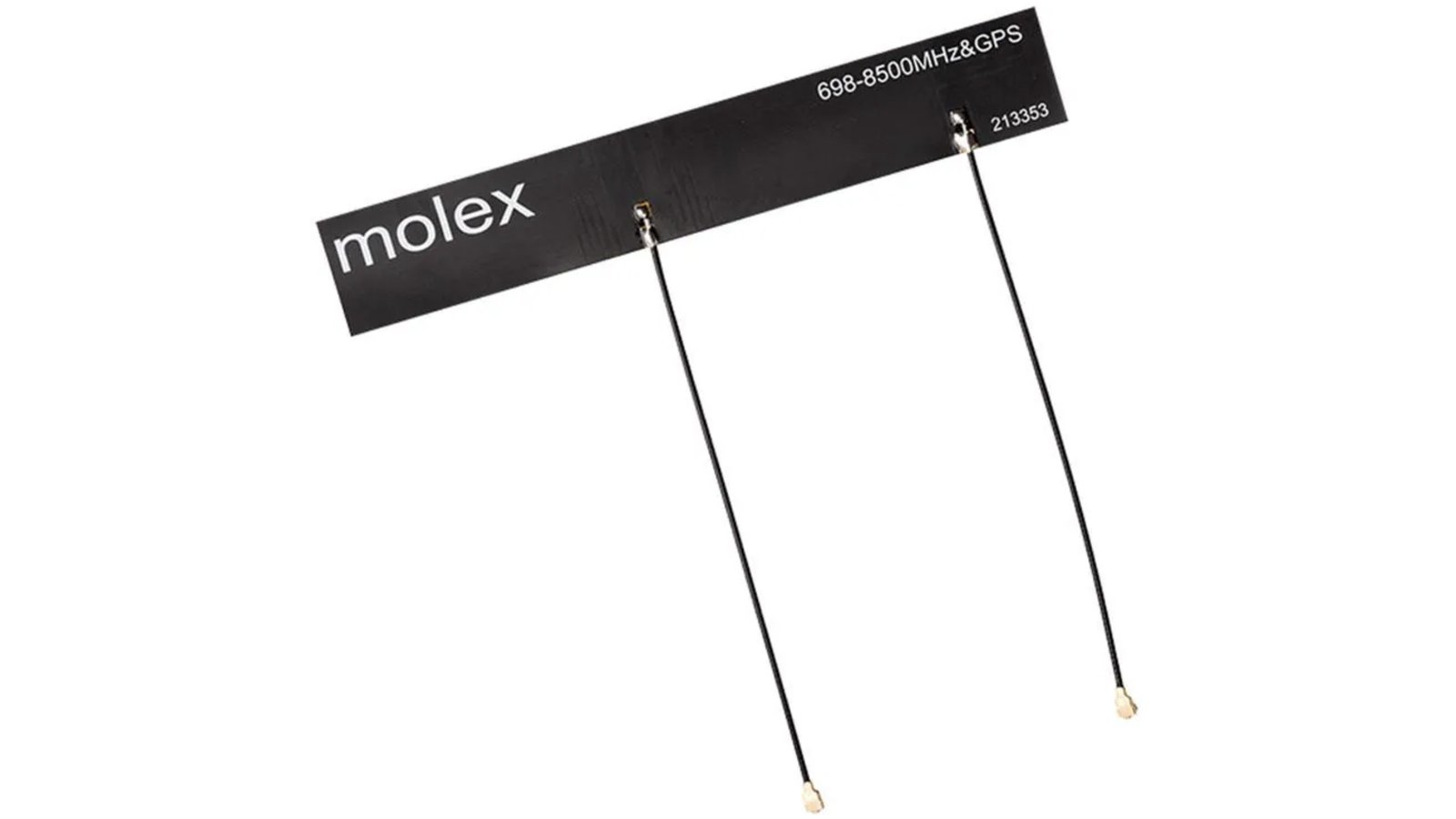 LTE/GPS 100 mm Combo Flexible Antenna, uses Protocols: Cellular (NBIoT, LTE), GSM, UMTS BEIDOU, GLONASS, GPS. Gain: 2.3 dBi, 2.5 dBi, 4.5 dBi, 5.4 dBi, 7 dBi. Coax frequency range: 698 MHz - 5 GHz. 10 Band, Adhesive Mount, 119.4 mm x 19.4 mm