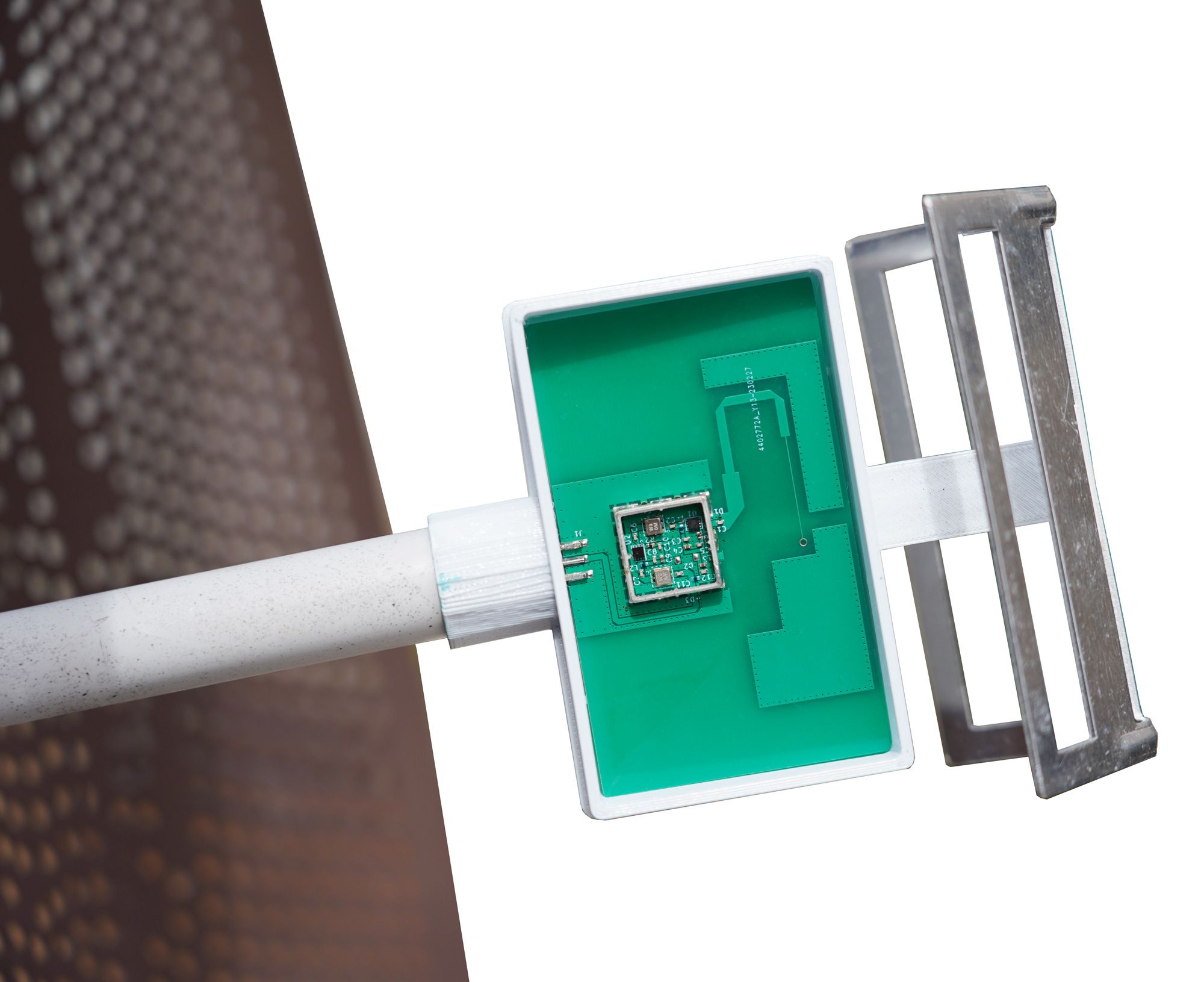 The photos shown here feature an early antenna prototype that is a single piece with roughly laser-cut wind holes. Once crowdfunding has completed, we will produce the molds for the three-petal version that will ship to backers. The production version will obviously be a lot neater looking!