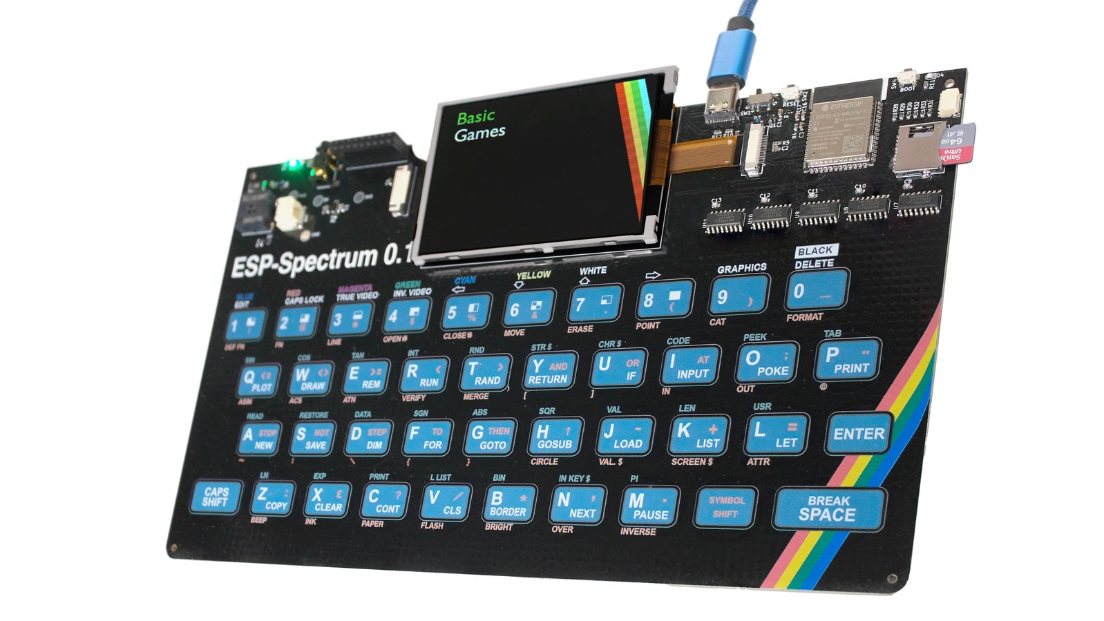For those looking to relive their childhood gaming experiences, the ESP32 Rainbow emulates both the 48K and 128K ZX Spectrums. We’ve recreated the iconic keyboard in full color, and it looks amazing! Whether you’re reminiscing about classic games, remembering your first Basic program, or filling a display case with nostalgia, ESP32 Rainbow is both fully functional and nice to look at.