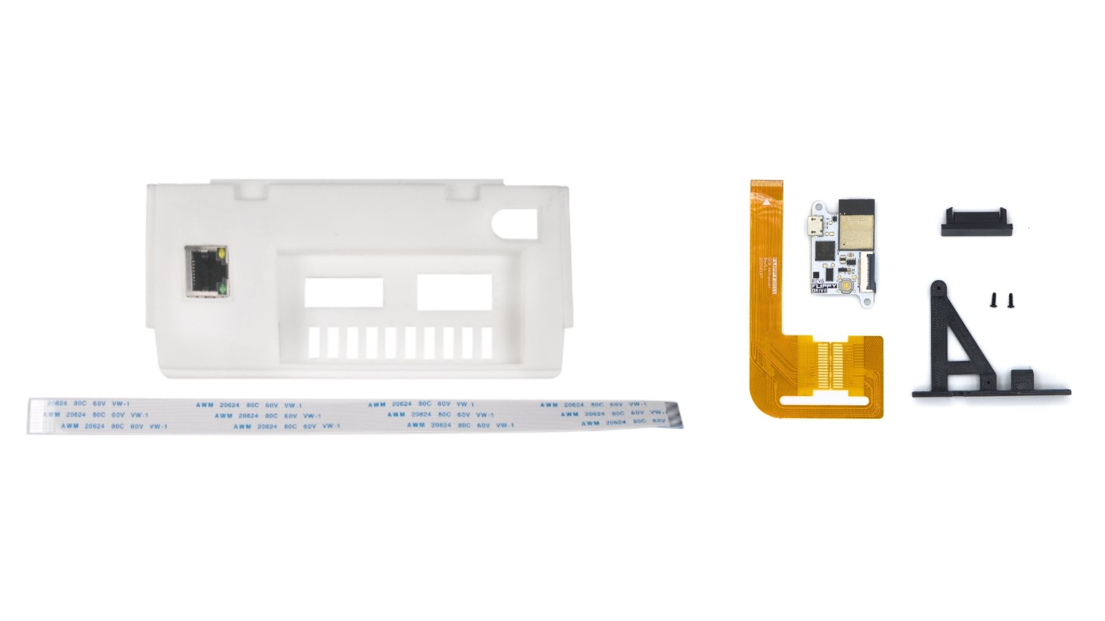 In cases where the original drive is non-function or has been removed, an additional 3D printed plastic plug is included to establish contact between the Flex and the console.