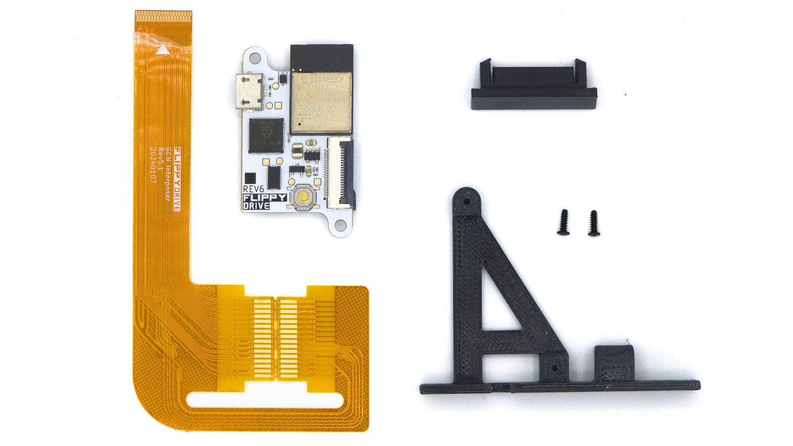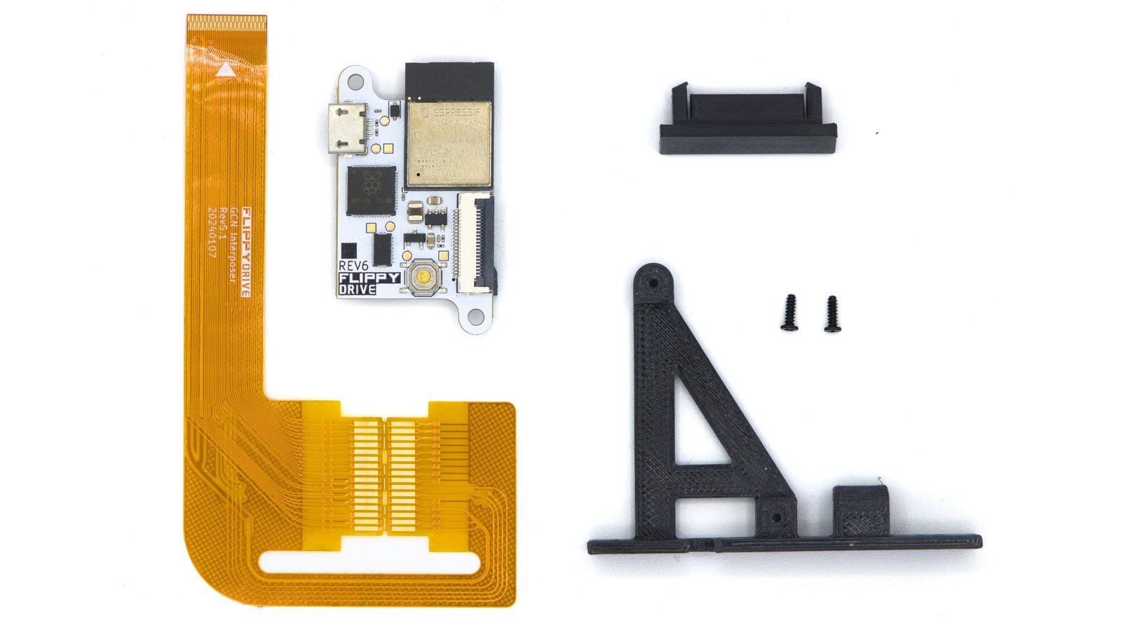 A solderless disc drive emulator compatible with the Panasonic Q. Includes FlippyDrive PCB, drive interposer flex, and mounting hardware.