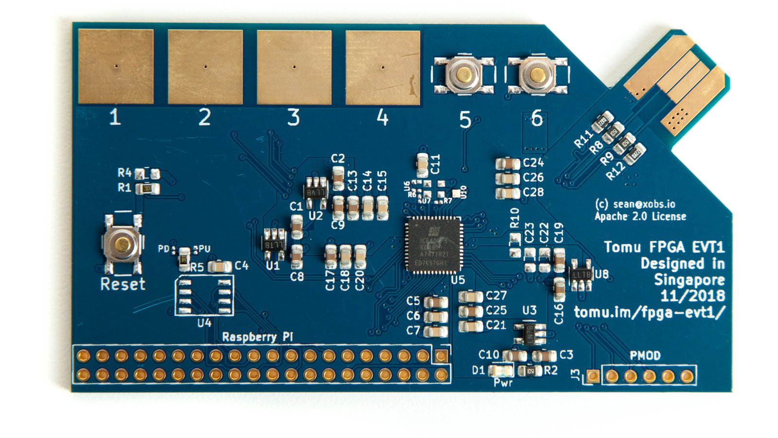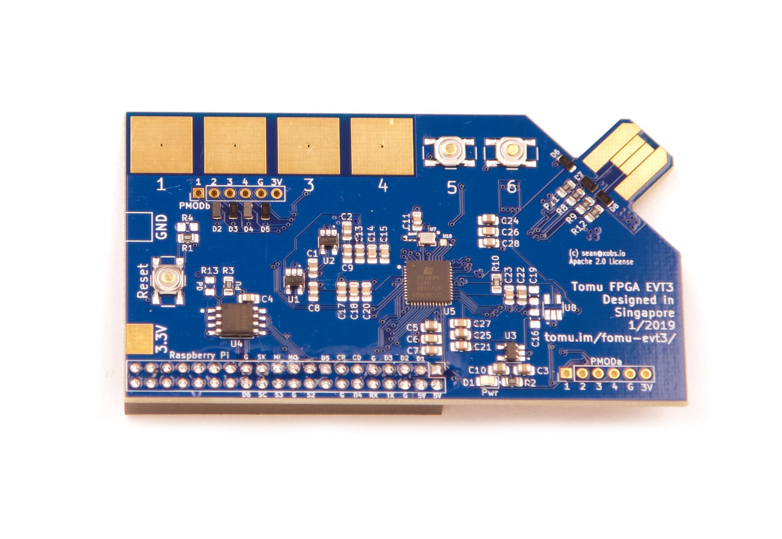 ³: Fomu has four copper pads near the edge. We have not yet validated any capacitive touch solutions.