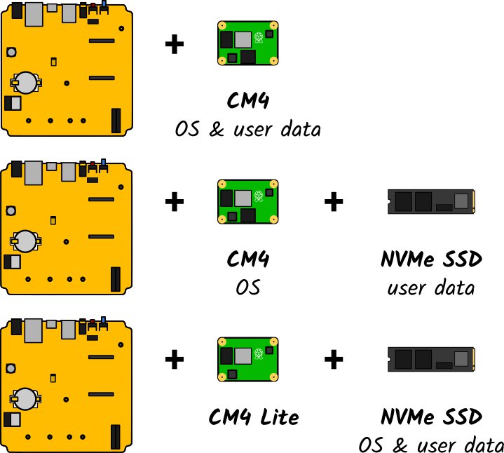 Unlike Home Assistant Yellow, the Yellow Kits do not come with a CM4, so you will need to provide your own. Of the 32 CM4 variants available, some of them do not come with eMMC flash storage - these are known as "Lite" variants of CM4. When using a CM4 Lite, you will need to install an NVMe SSD in the M.2 slot so the operating system and user data have a place to reside.