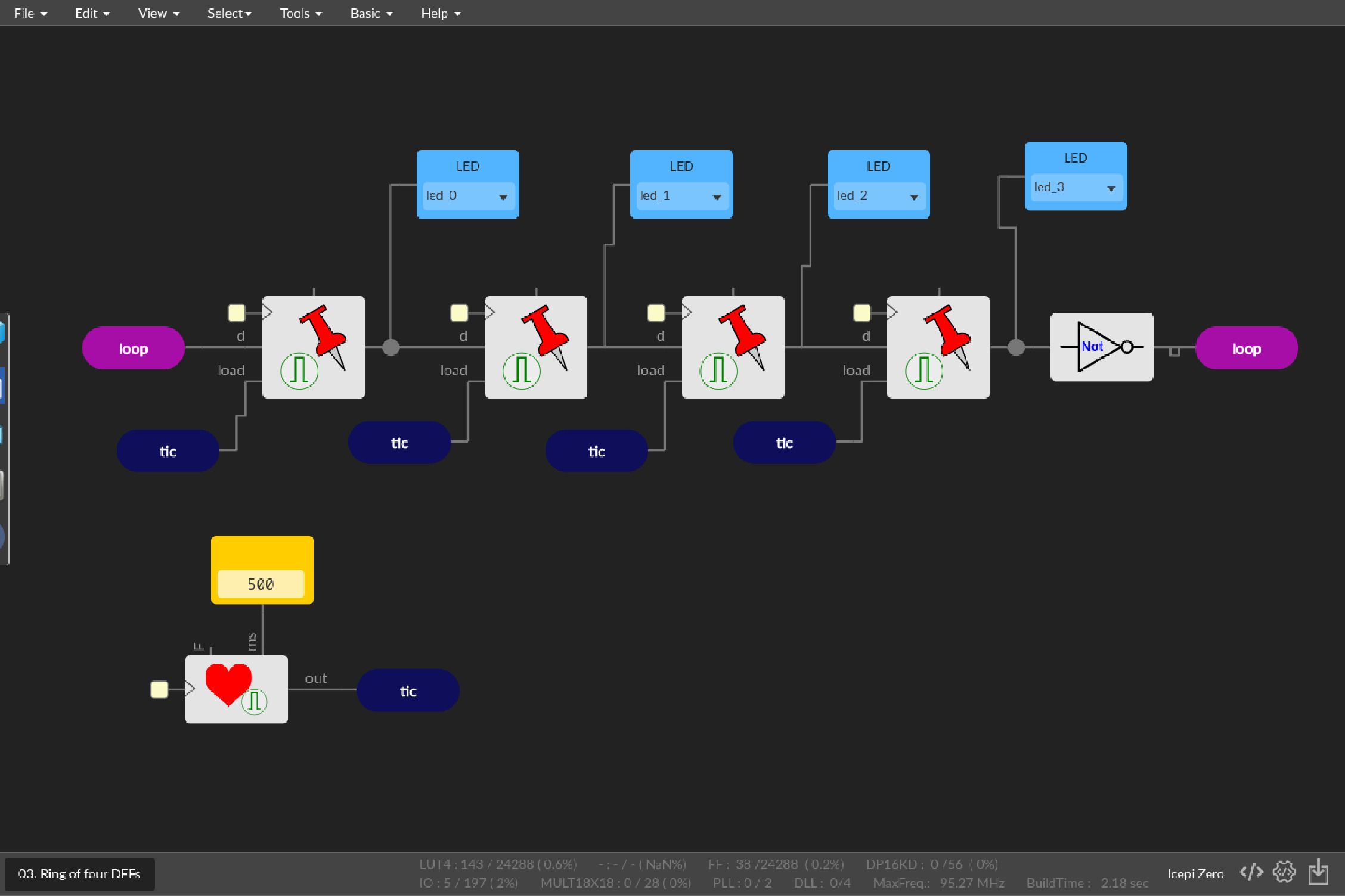Additionally, Icepi is the perfect FPGA device for students and hobbyists. It is small with no external hardware needed for programming, paired with it’s diverse peripherals and relatively cheap price makes it the perfect device for classrooms. Furthermore, it is fully supported by Icestudio (currently hosted in this fork), making it easy to use for beginners and a great way to get introduced into FPGA designing.