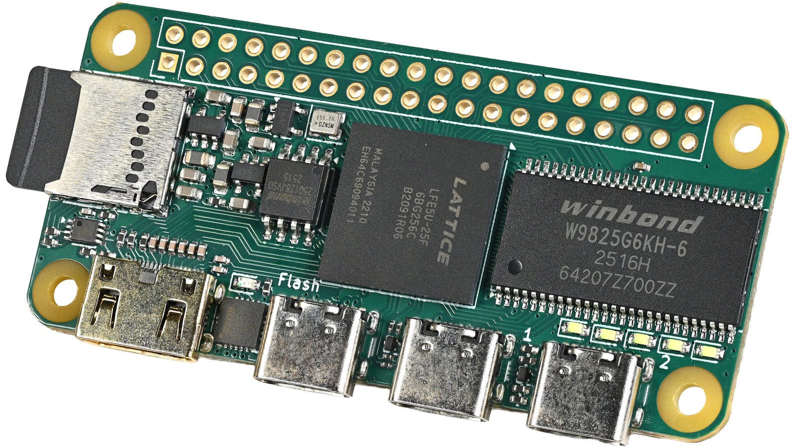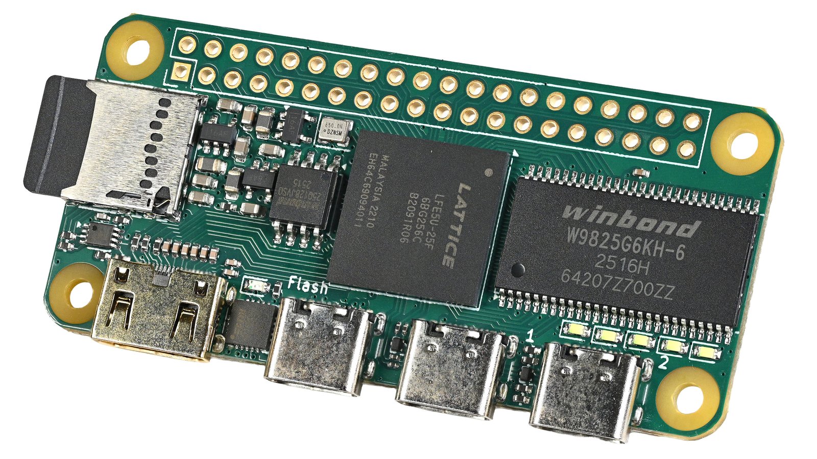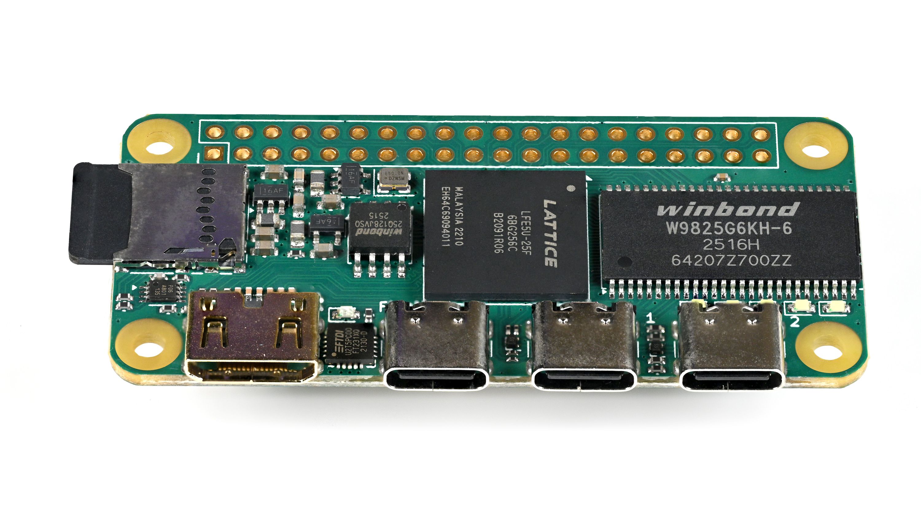Icepi Zero is an elegant and compact FPGA development board with a Raspberry Pi Zero form factor. It features a powerful Lattice ECP5 FPGA, enabling advanced designs while keeping a small, portable size. It also has multiple USB Type-C ports, as well as a GPDI mini display-out, allowing easy digital video output. Its compact, familiar design is ready for integration into existing projects and enclosures, and it is a great way to get into FPGA gateware experimentation.
