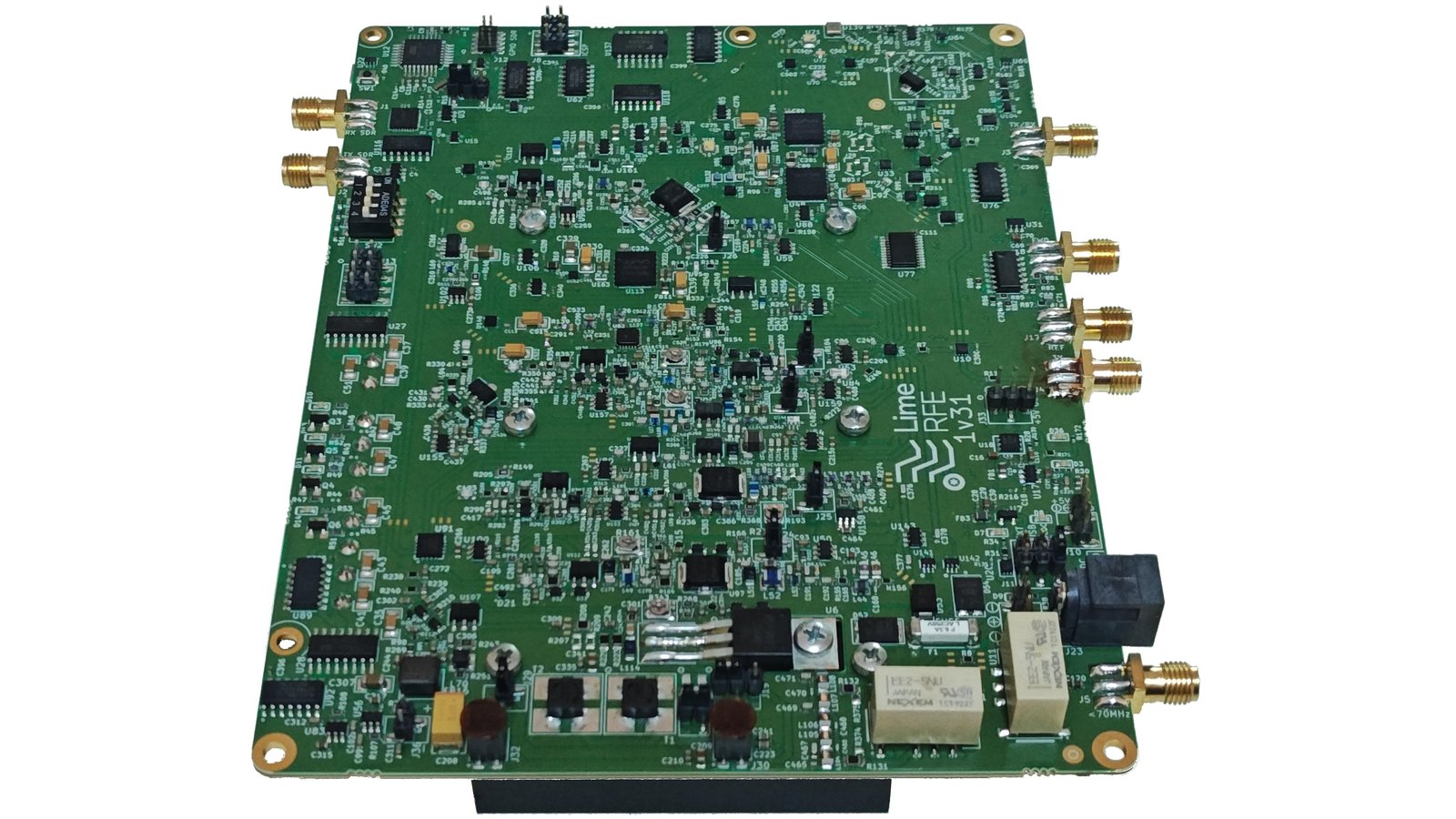 LimeRFE integrated power amplifier (PA), low noise amplifier (LNA) and filter solution for LimeSDR and LimeNET Micro software-defined radio applications.