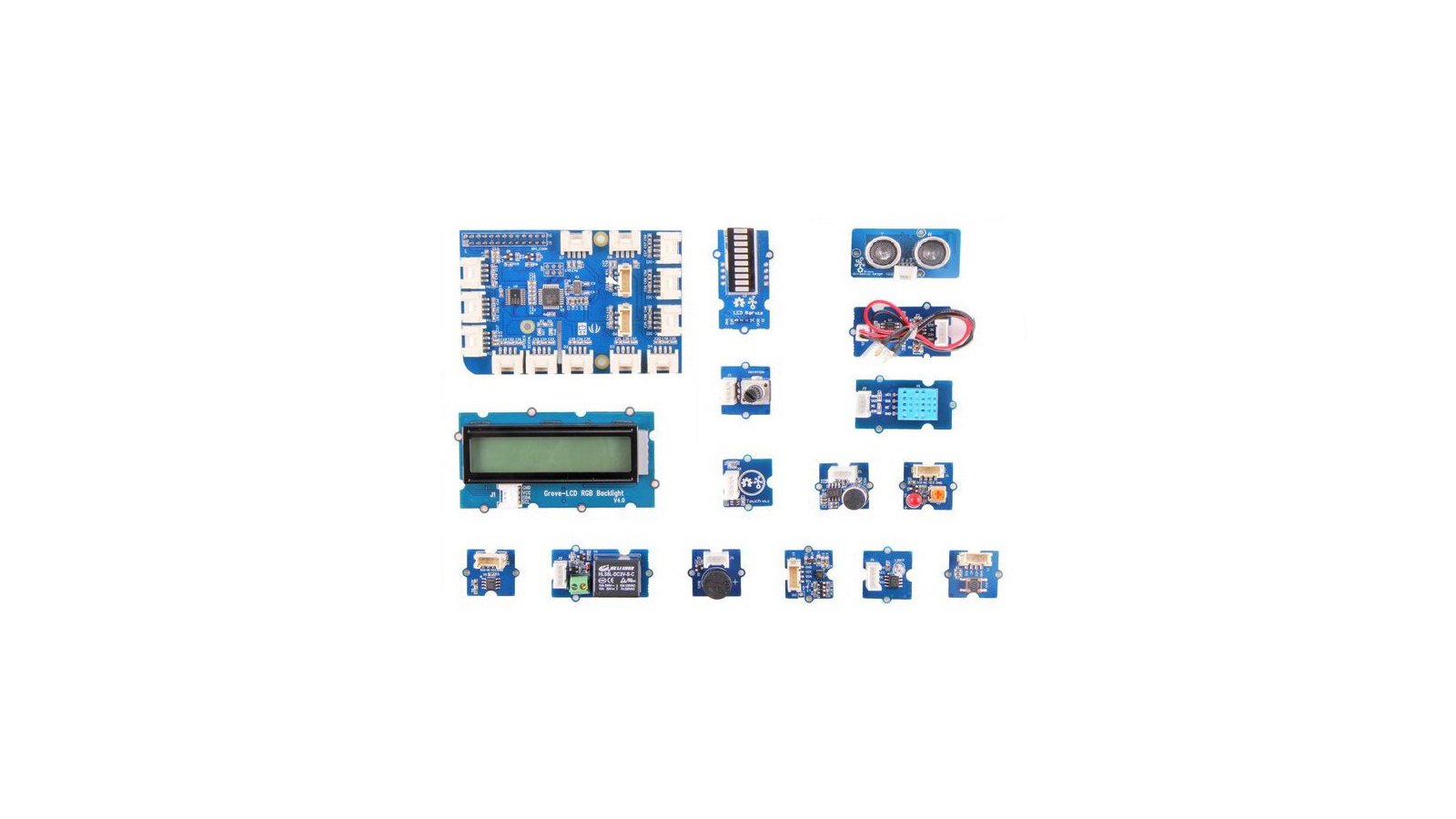 A collaboration with Seeed Studio, this 21-piece kit comes with a GrovePi+, an acrylic base plate, a USB extension cable, and a wide variety of Grove sensors and actuators: Ultrasonic Ranger, Temp&Humi Sensor, Temperature Sensor, Rotary Angle Sensor, Button, Light Sensor v1.2, 3-Axis Digital Accelerometer (±1.5 g), Relay, Sound Sensor, LCD RGB Backlight, Buzzer, Red LED, LED Bar 2.0, Touch Sensor, and Piezo Vibration Sensor. Compatible with Scratch. NOTE: LimeSDR Mini, Raspberry Pi, power supply, and microSD card are NOT INCLUDED.