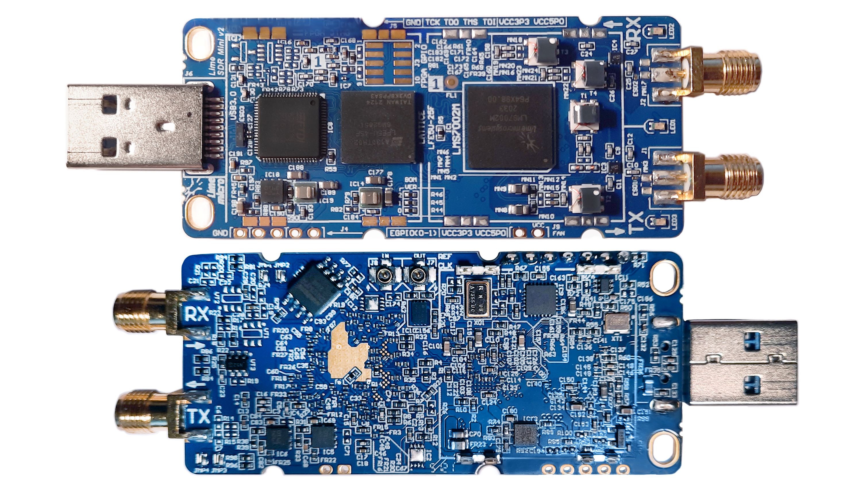 LimeSDR Mini 2.0 is an upgraded, drop-in replacement for LimeSDR Mini, a hardware platform for developing and prototyping high-performance and logic-intensive digital and RF designs that use an FPGA coupled with Lime Microsystems’ LMS7002M RF transceiver.
