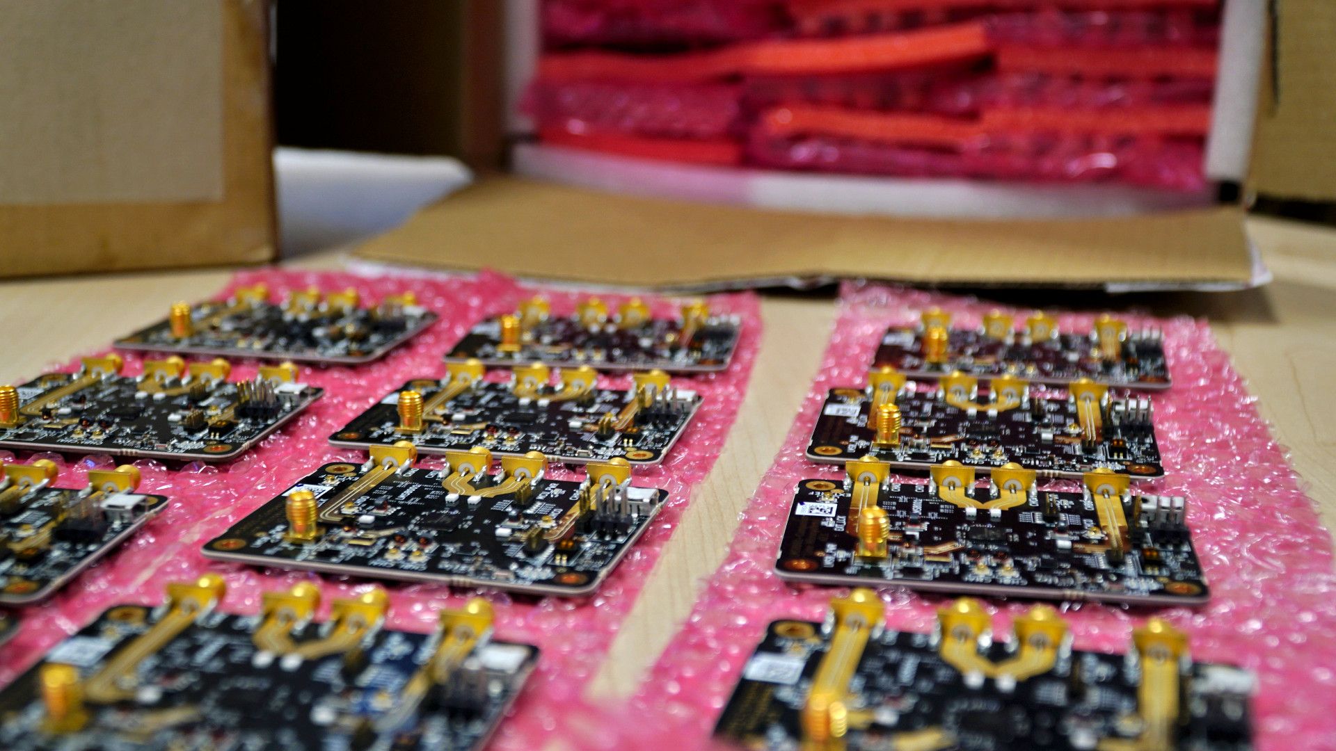 The second demo follows in the footsteps of the one earlier this week in which we can see a LimeNET Mini configured as an LTE base station, albeit this time with downlink on 2.5 GHz and the LMS8001 Companion configured to shift this all the way up to 10 GHz. A second LMS8001 Companion then performs down-conversion to 2.68 GHz in LTE Band 7, with both boards also configured to forward uplink in the opposite direction, but this time at fDL - 120 MHz. Once again we see a live video call being routed via the repeater link.