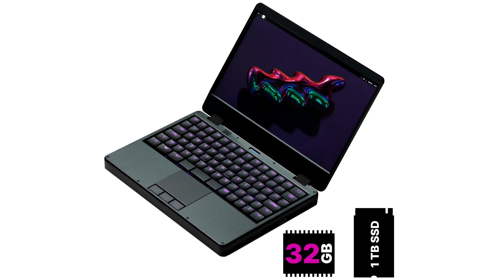 MNT Super Reform Next Laptop in Black with 32 GB RAM and 1 TB NVMe SSD. AC Adapter not included.