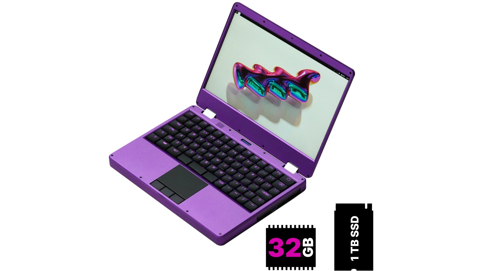 MNT Super Reform Next Laptop in Purple with 32 GB RAM and 1 TB NVMe SSD. AC Adapter not included.