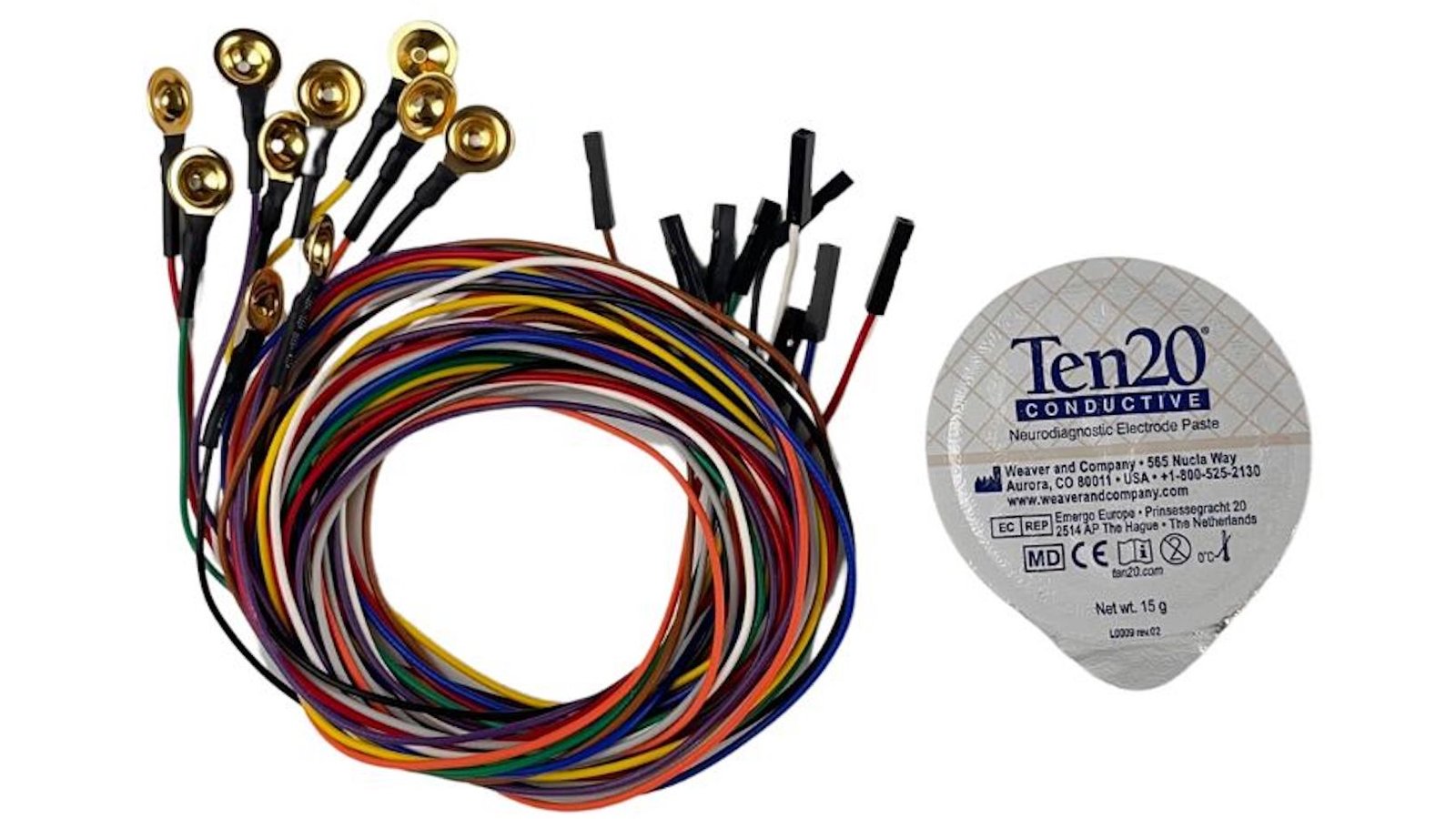 10 gold-plated electrodes with 100 cm wire & 15 grams Ten20 conductive paste for the highest quality EEG recordings