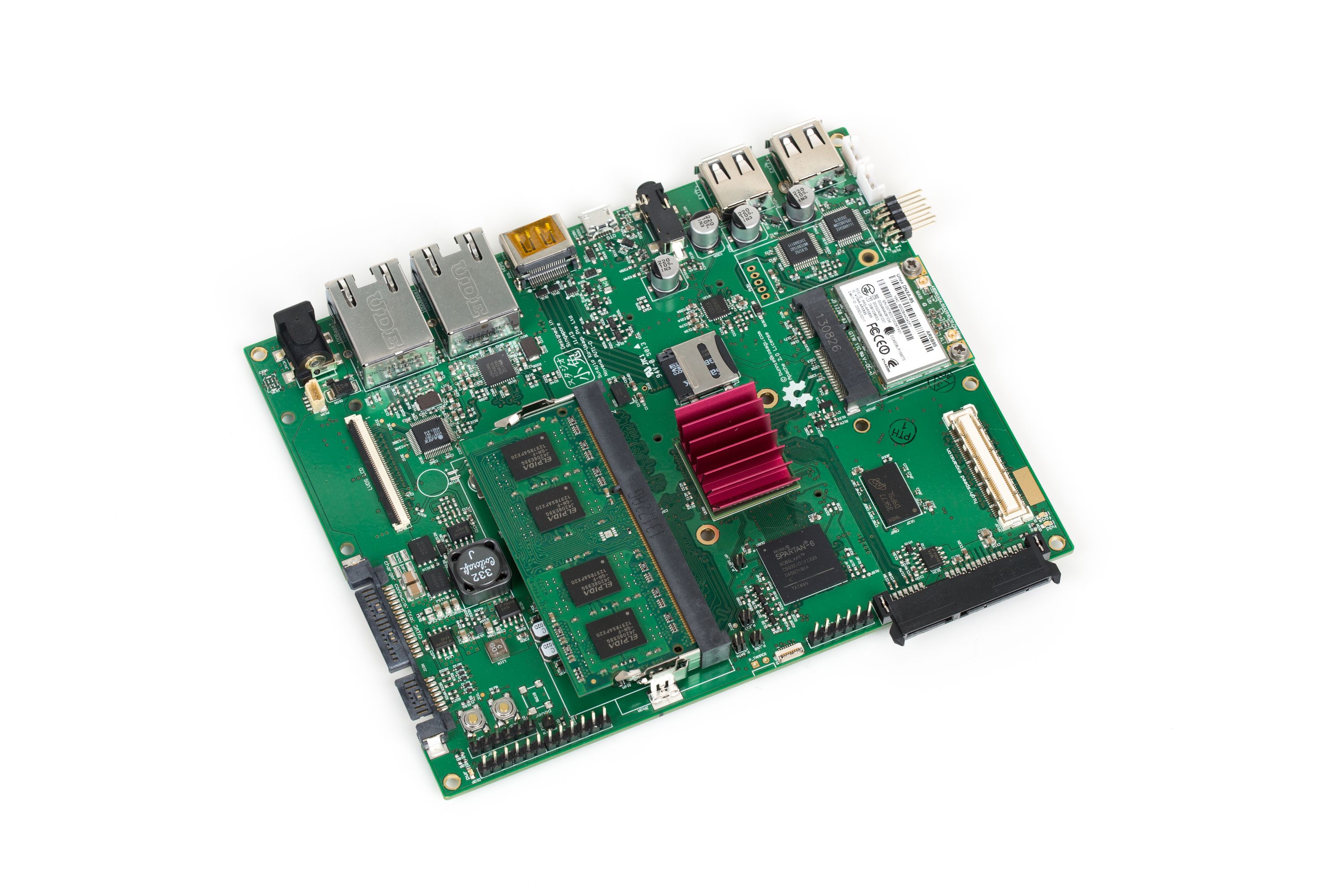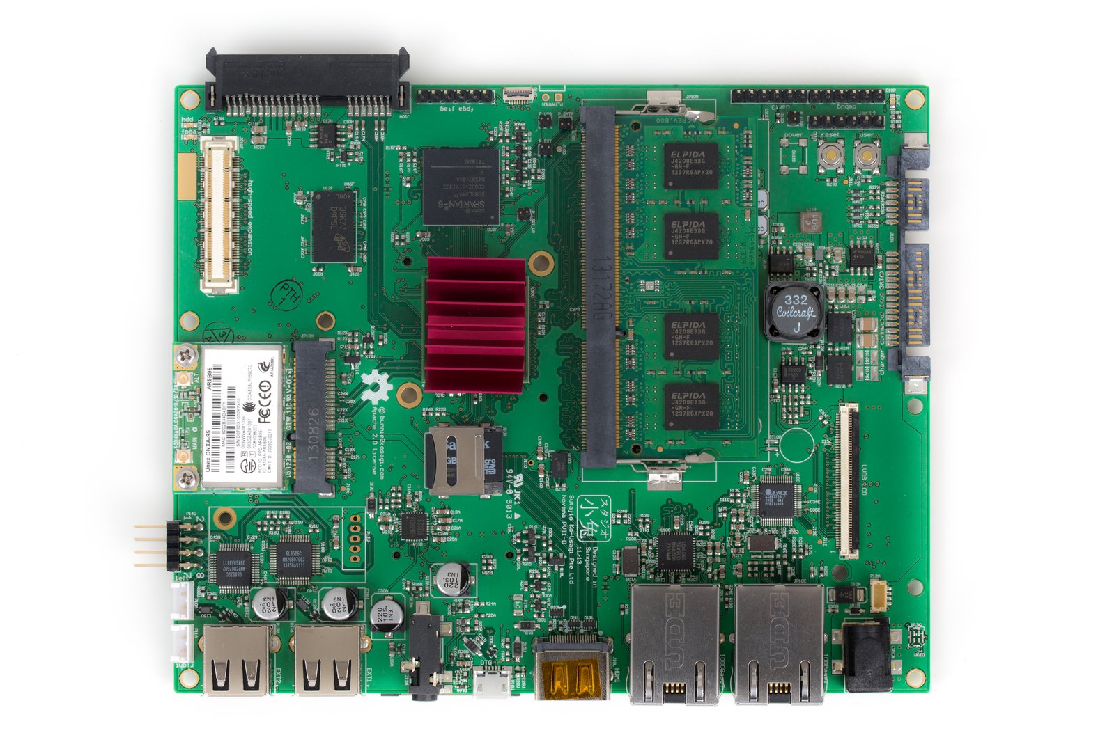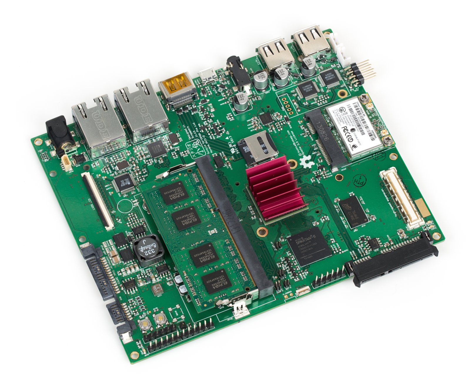 For crafty people who want to build their case and define their own style, we'll deliver to you the main PCBA, stuffed with 4GiB of RAM, 4GiB microSD card, and an Ath9k-based PCIe wifi card. Boots to a Debian desktop over HDMI.
