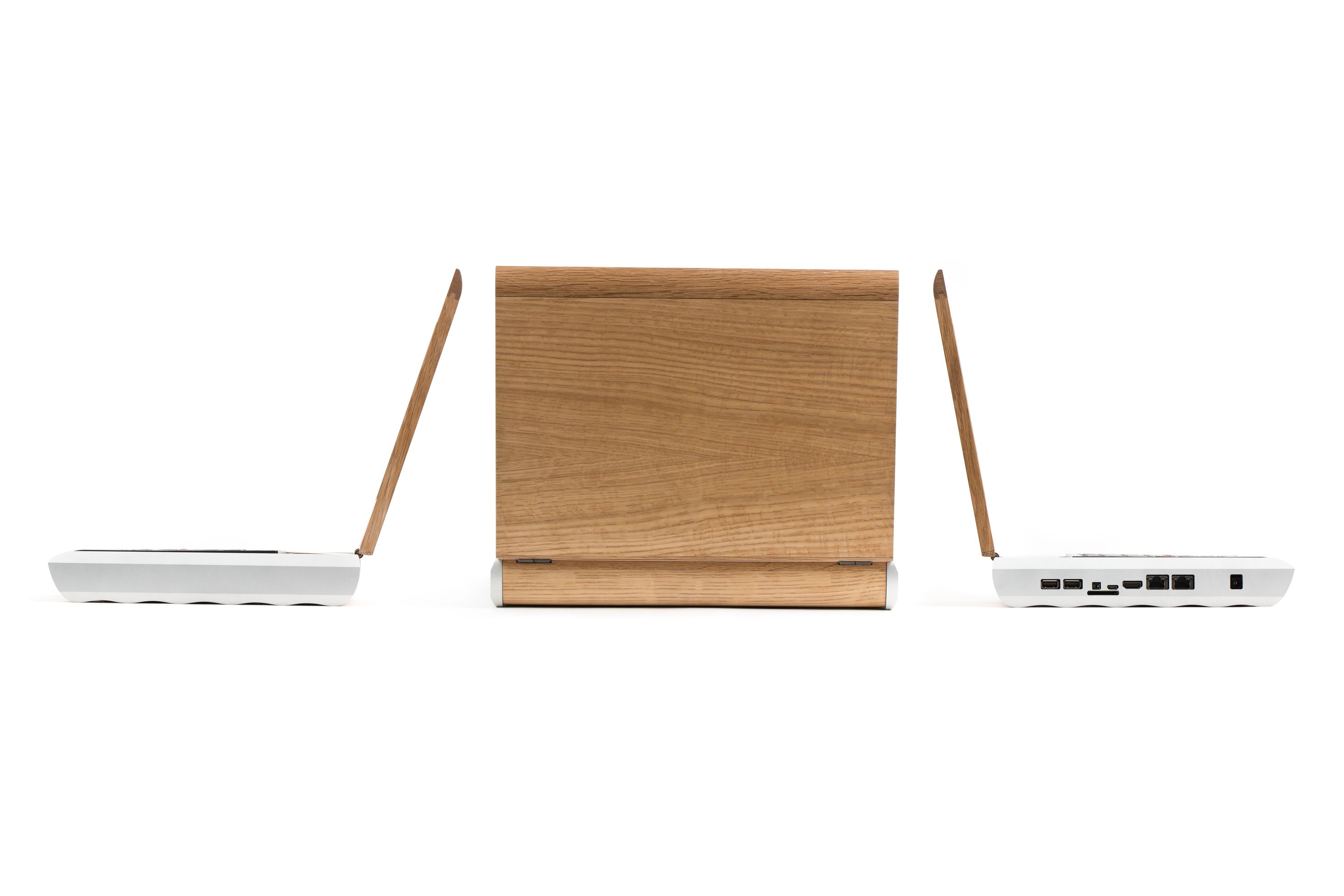 The overall architecture of Kurt’s case mimics the industry-standard clamshell notebook design, but with a twist. The keyboard used within the case is wireless, and can be easily removed to reveal the hardware within. This laptop is an outstanding blend of tasteful design, craftsmanship, and open hardware. And, to wit, since these are truly hand-crafted units, no two units will be exactly alike – each unit will have its own grain and a character that reflects Kurt’s judgment for that particular piece of wood.