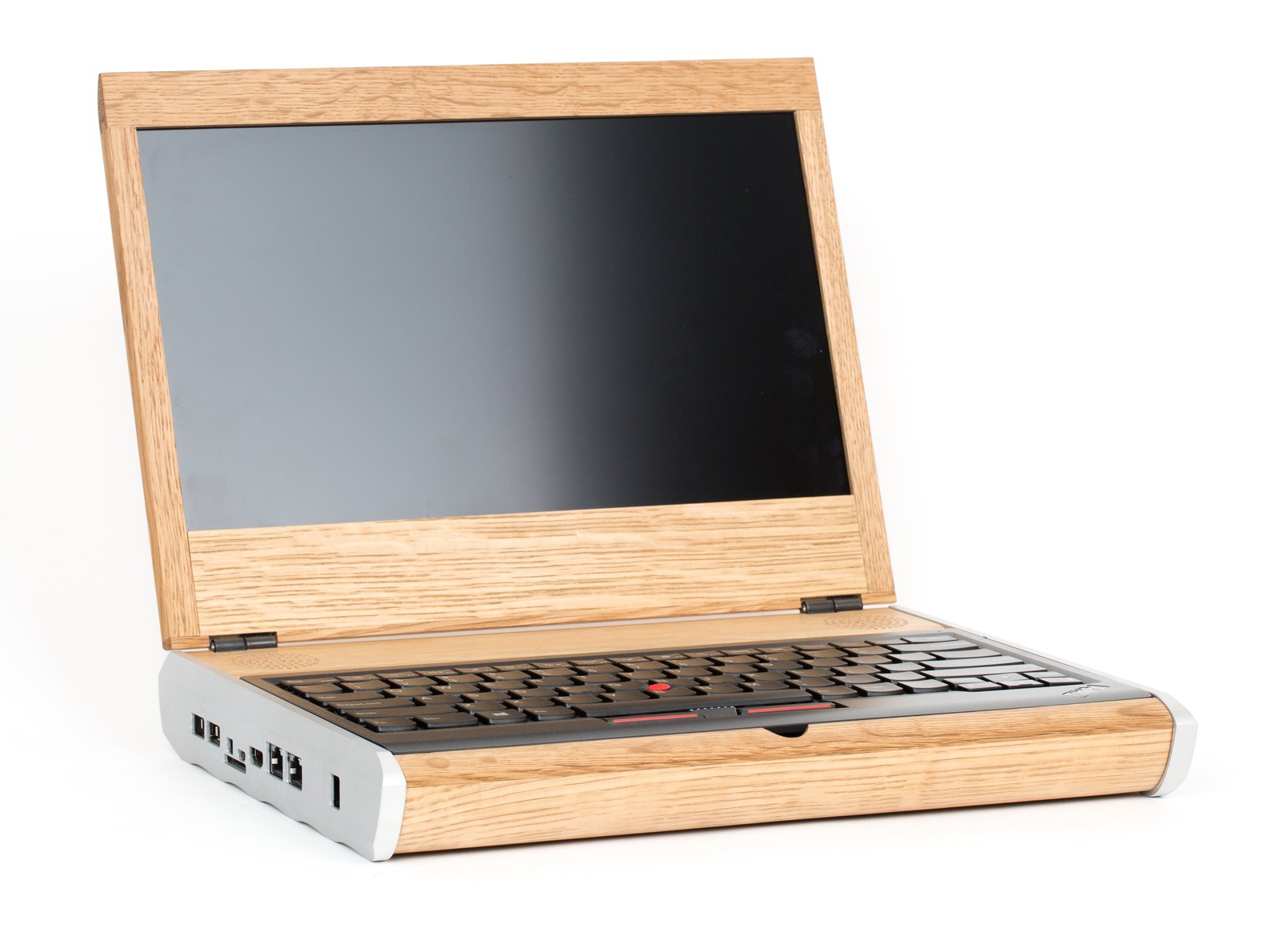All of the electronic components included in the standard laptop above, except with a 480GiB Intel 730 SSD, a Lenovo Bluetooth trackpoint-keyboard, and an outstanding hand-crafted wood and aluminum case.