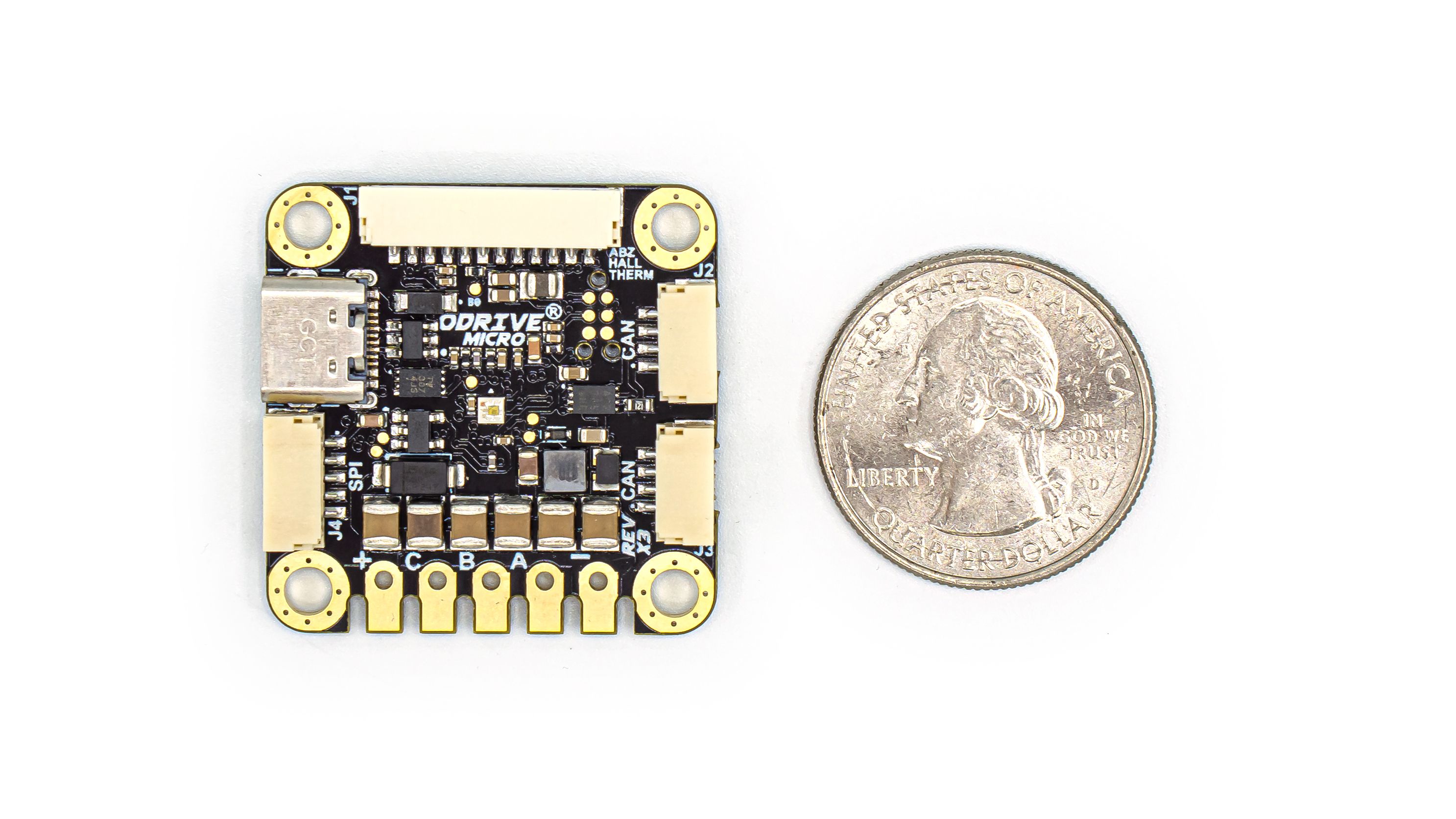 ODrive Micro is an ultra-compact, high-performance servo motor drive from ODrive Robotics, designed to make precise robot motion easier than ever before. Building on ODrive’s powerful software and mature hardware ecosystem, ODrive Micro enables the next generation of highly integrated robotic applications. Pair it with the brushless motor of your choice, configure it with the plug-and-play web GUI, and build something great!
