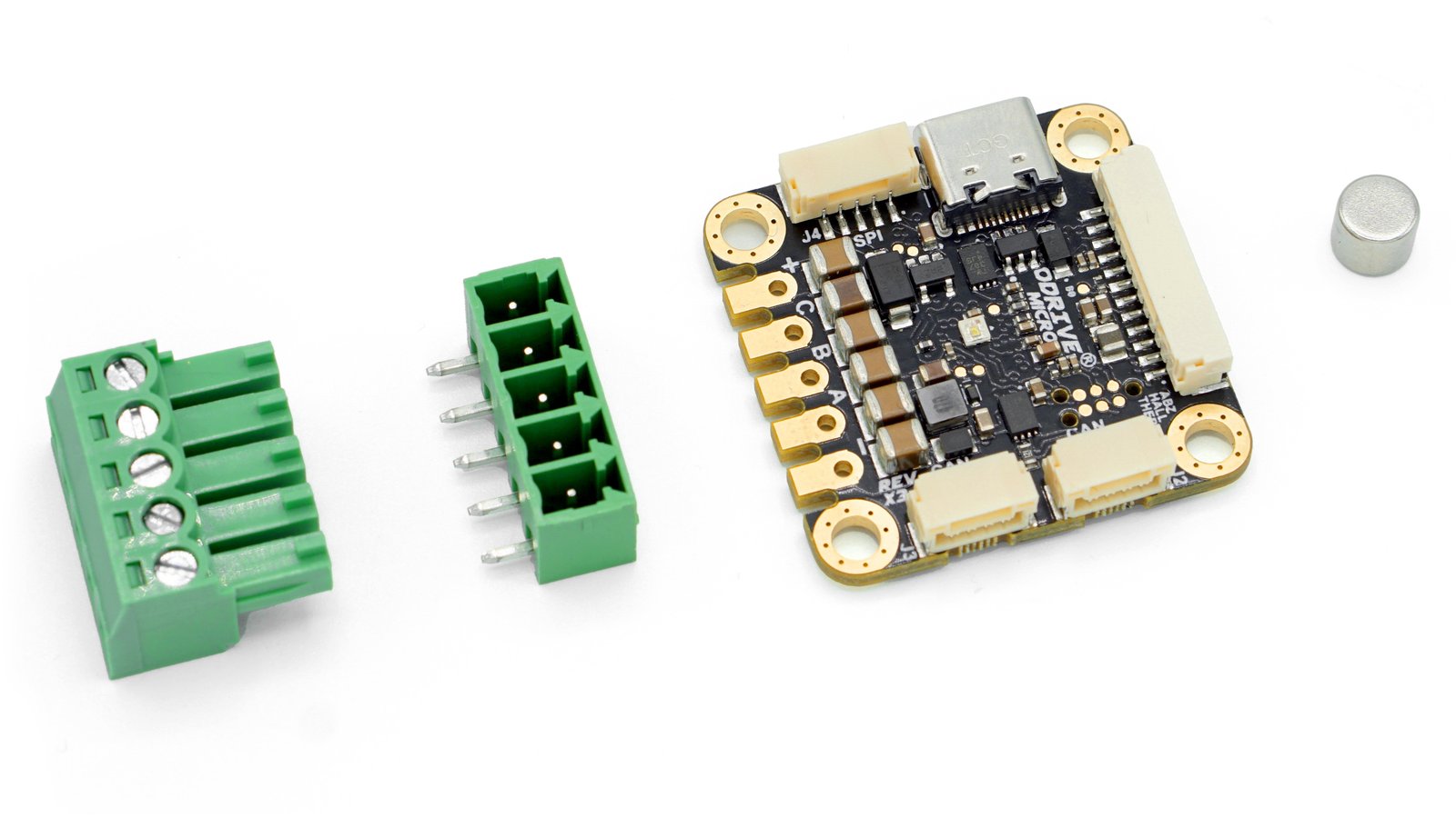 ODrive Micro is engineered for seamless setup and flexible integration. Featuring an onboard magnetic angle sensor, it mounts directly on your motor without requiring a separate encoder. Power it with a 10-30 V source, connect via the convenient daisy-chained CAN connector, and you’re ready to roll!