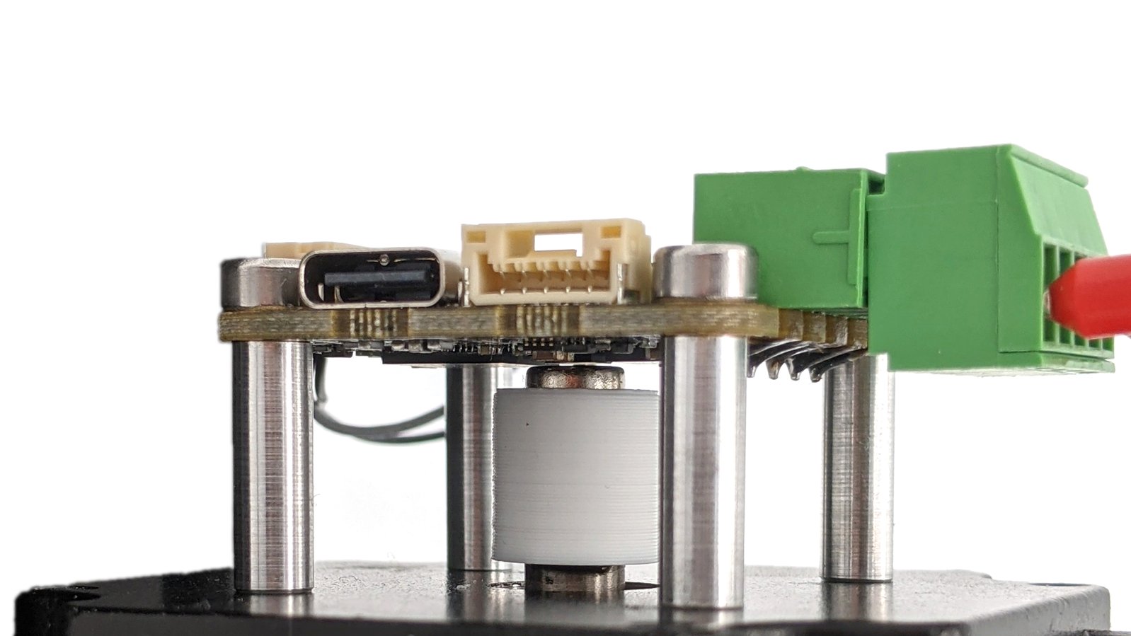 Motor controller board with encoder magnet, euroblock plug, and euroblock receptacle