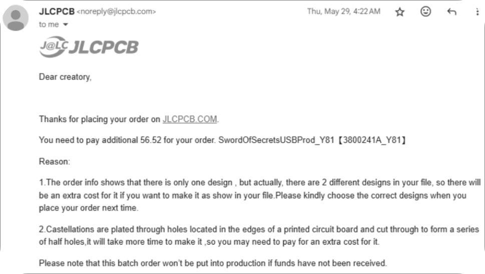 Onward! Next update, I’ll dive into the next stage of turning the Sword from design files into something you can hold, plug in, and start hacking. Or… it’ll reveal some secret challenge! Stay tuned.