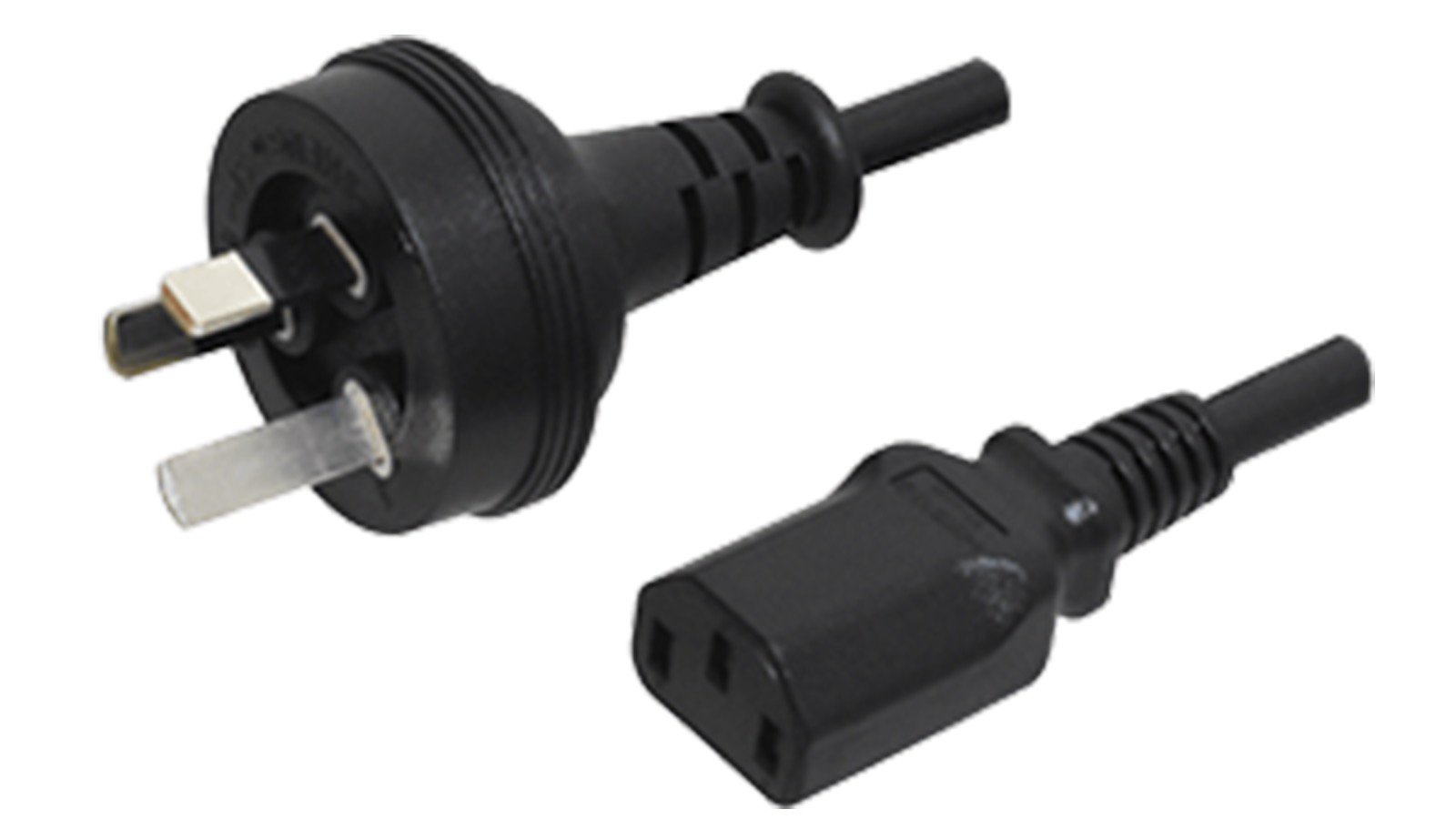 An AC cable with an AU plug and a C13 plug to fit a C14 port.