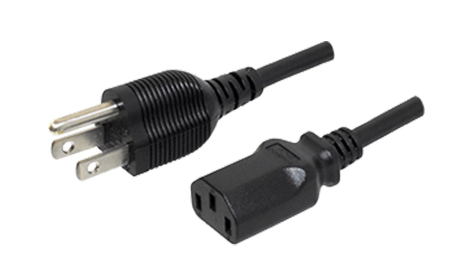 An AC cable with a US plug and a C13 plug to fit a C14 port.