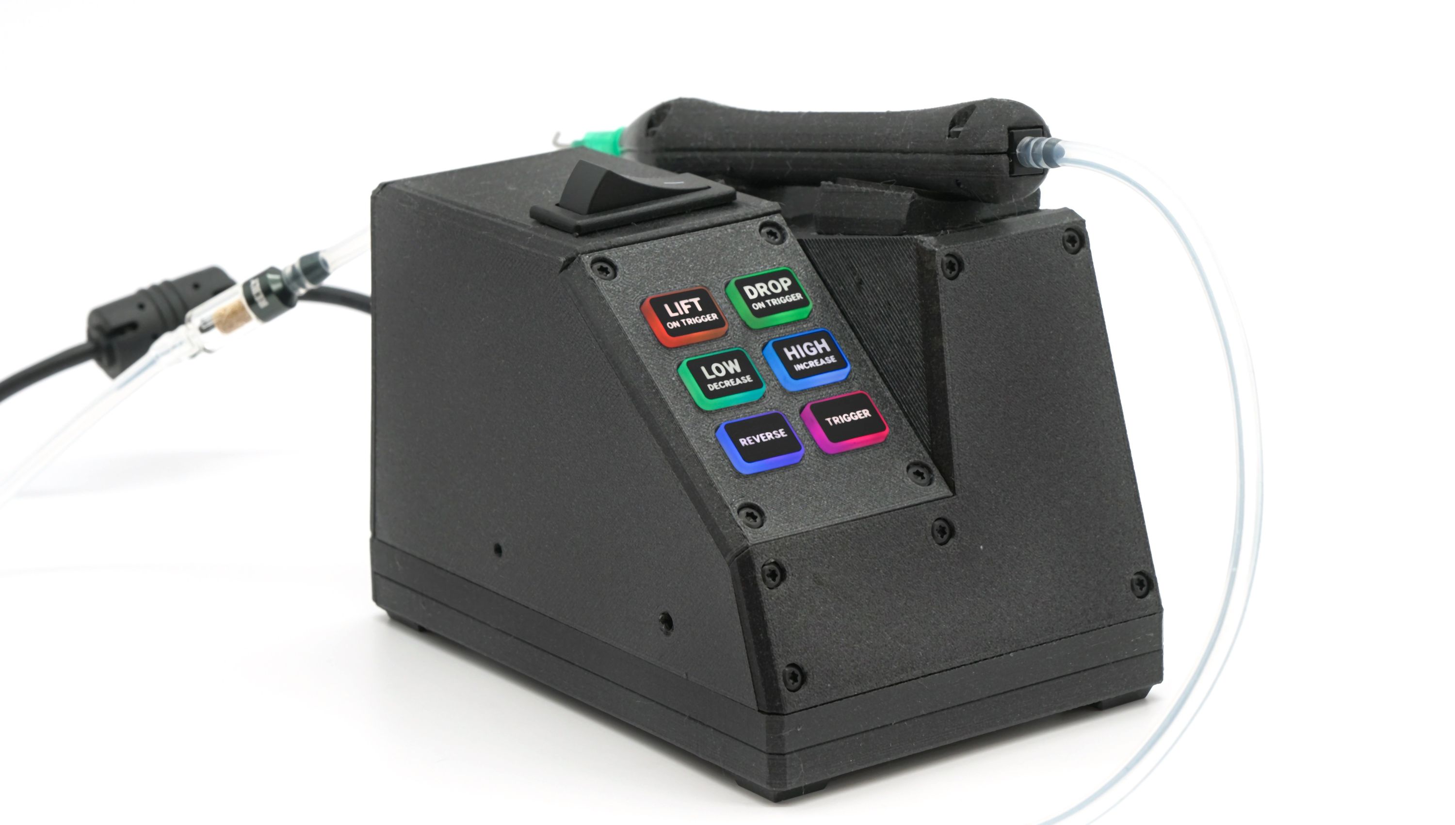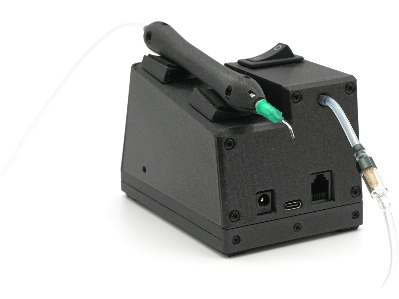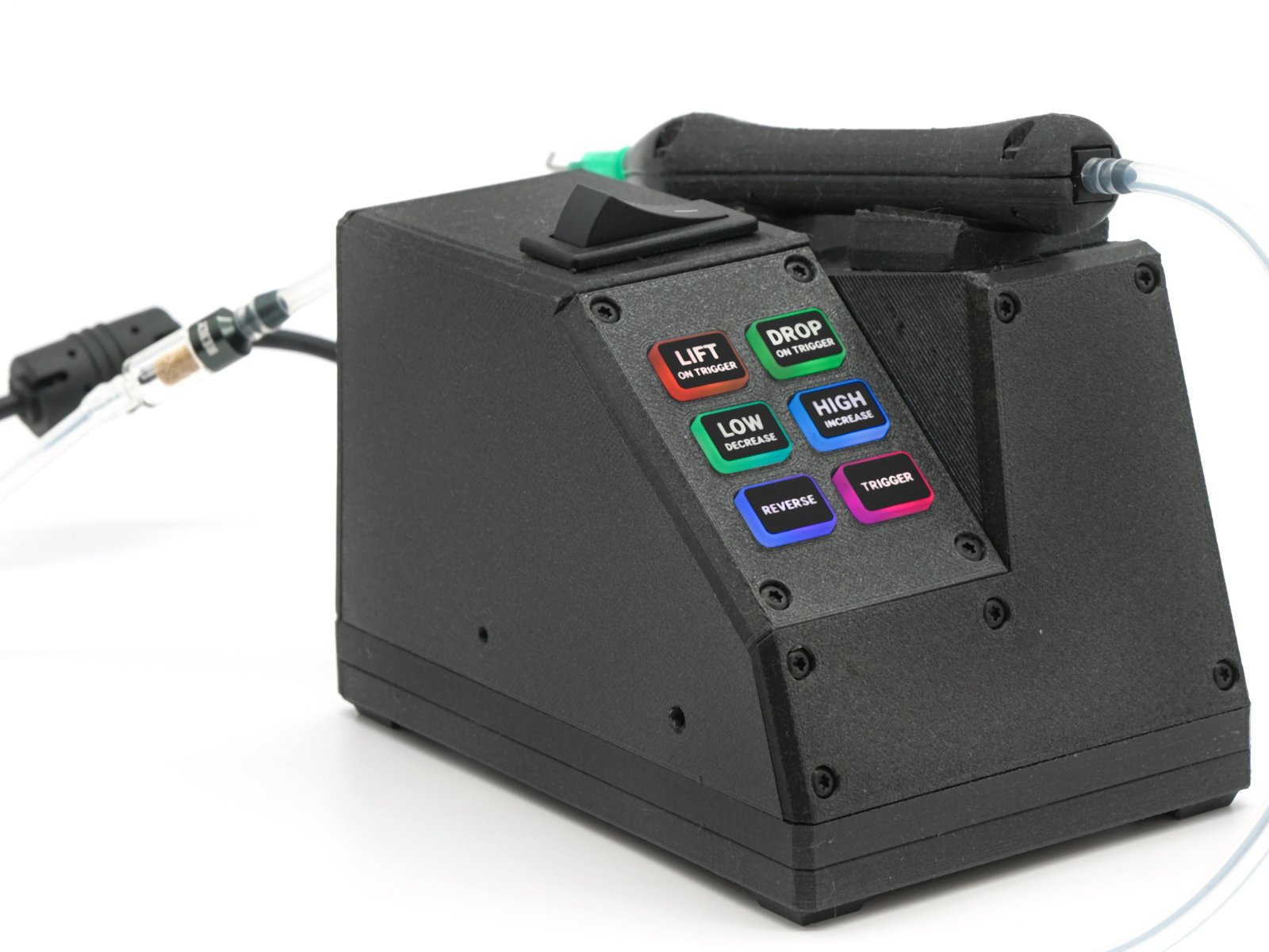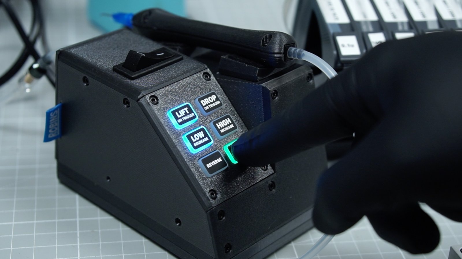 Tactile silicone buttons with RGB backlighting offer full control over the unit. You can change operation modes, switch between high- and low-power settings, or activate reverse mode to clean your nozzle. The buttons also allow you to configure things like vacuum power and LED brightness.