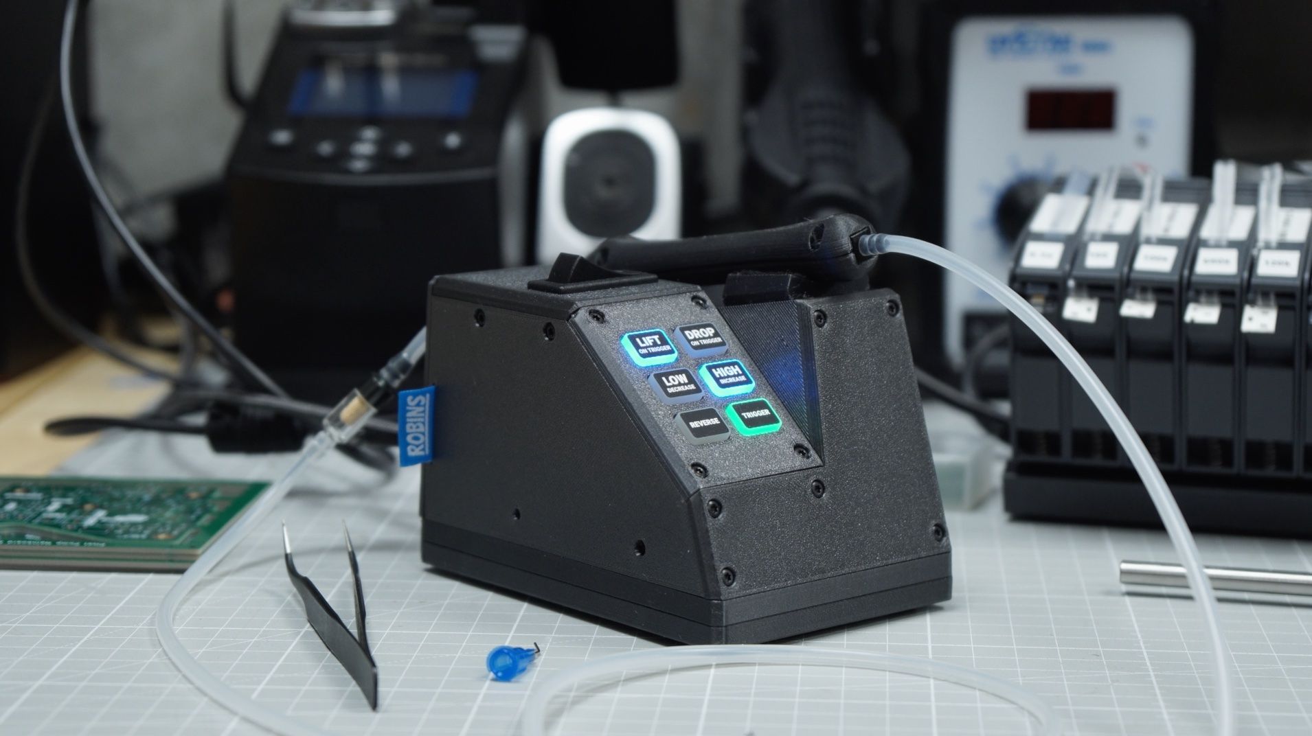 Contains Pixel Pump, one foot pedal, a power supply, a USB Type-C cable, and a set of nozzles suitable for picking and placing most SMD components, including small 0402 passives, larger parts like inductors and ICs, and just about everything in between. SMD magazines, SMD magazine rails, and power cord are not included. For a limited time, discounted 20% off from the $499 retail price.