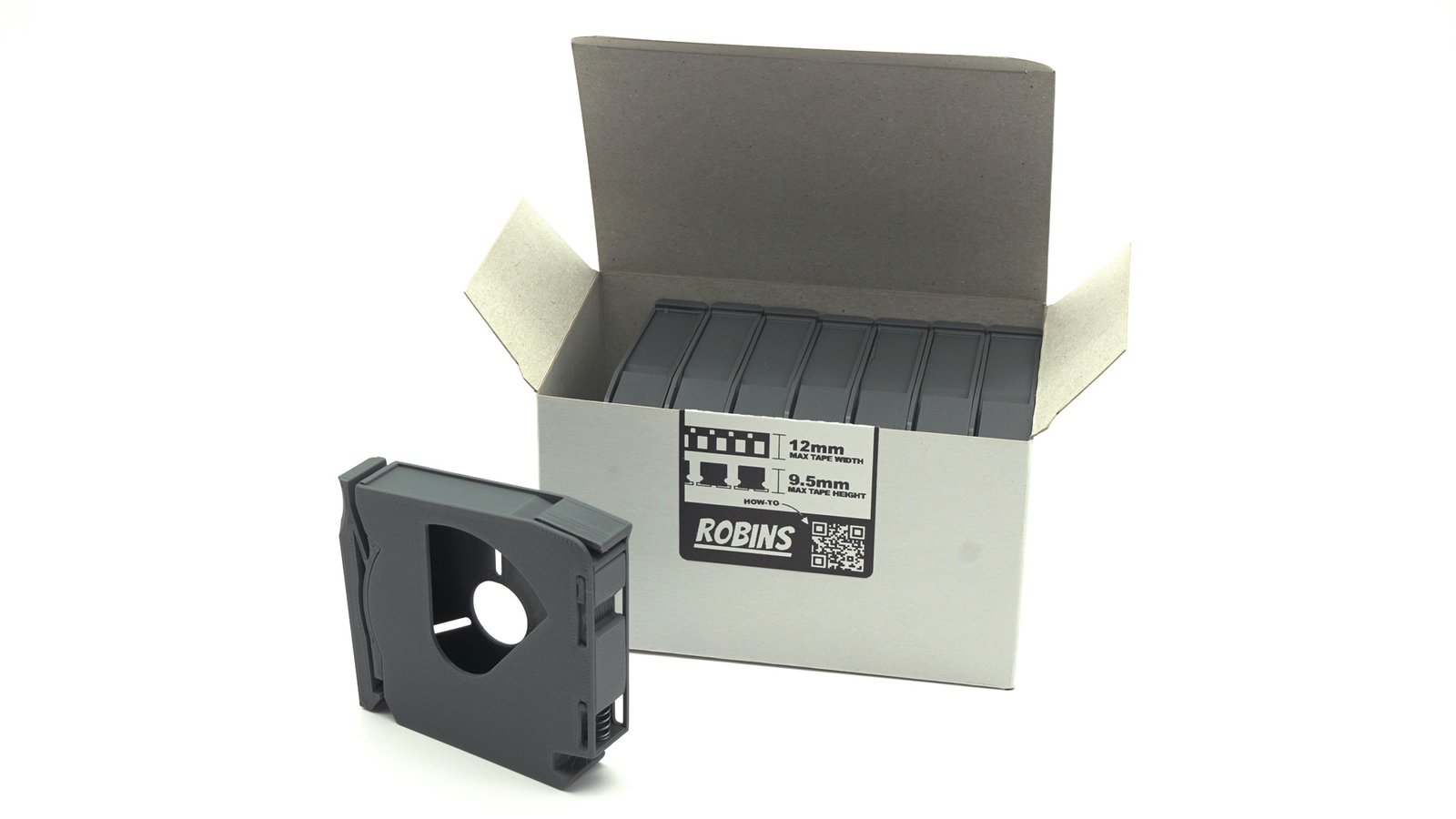 Our SMD Magazines are injection-molded containers for SMD tape. They are custom built to store components and present them for picking. Thanks to a spring-loaded mechanism at the front, these magazines accommodate most commonly used parts, including those packaged on tape up to 12 mm wide and 9.5 mm in height. Each magazine can hold plenty of components (900 0603 passives, for example). Finally, you can use standard, 10-mm-wide, adhesive labels to mark the contents of each magazine, which makes organization a breeze.