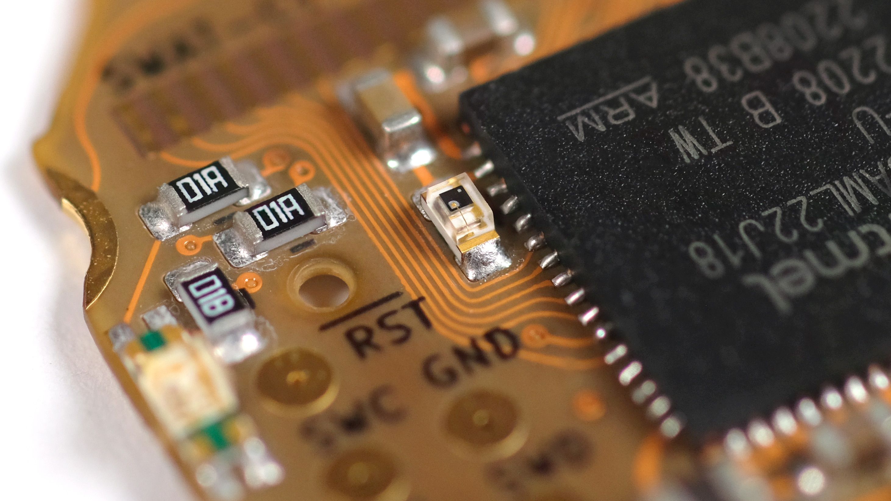 The SAM L22 microcontroller at the heart of Sensor Watch is an ARM Cortex M0+ chip with 256 KB of Flash and 32 KB of RAM, running at up to 32 MHz. It’s similar in many ways to the SAM D21 you’d find in a Feather M0 or Arduino Zero, with many of the same versatile peripherals: