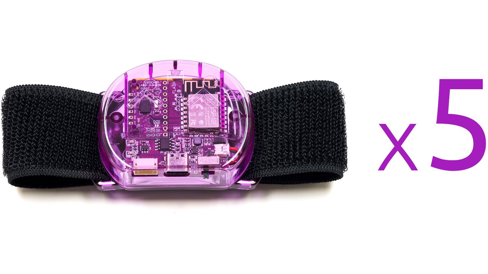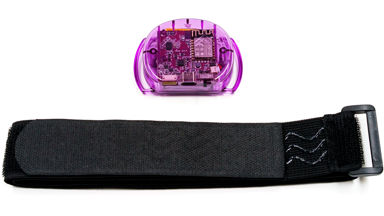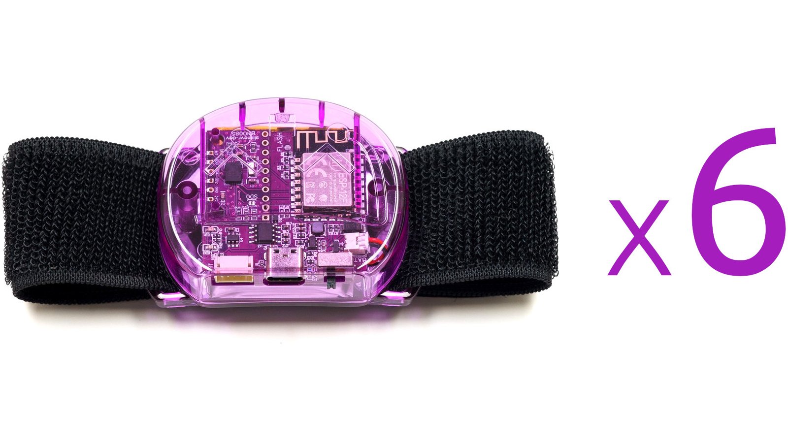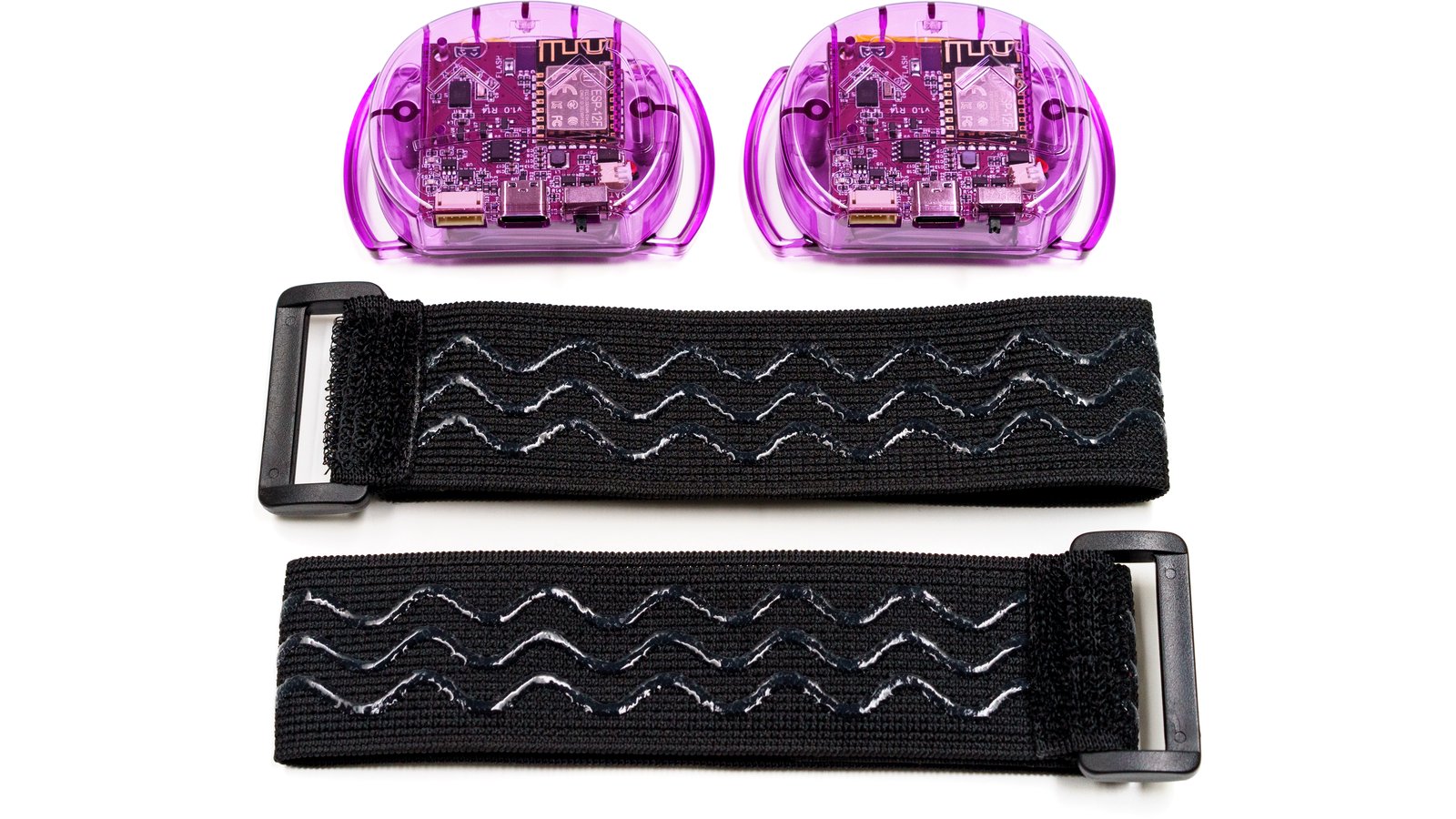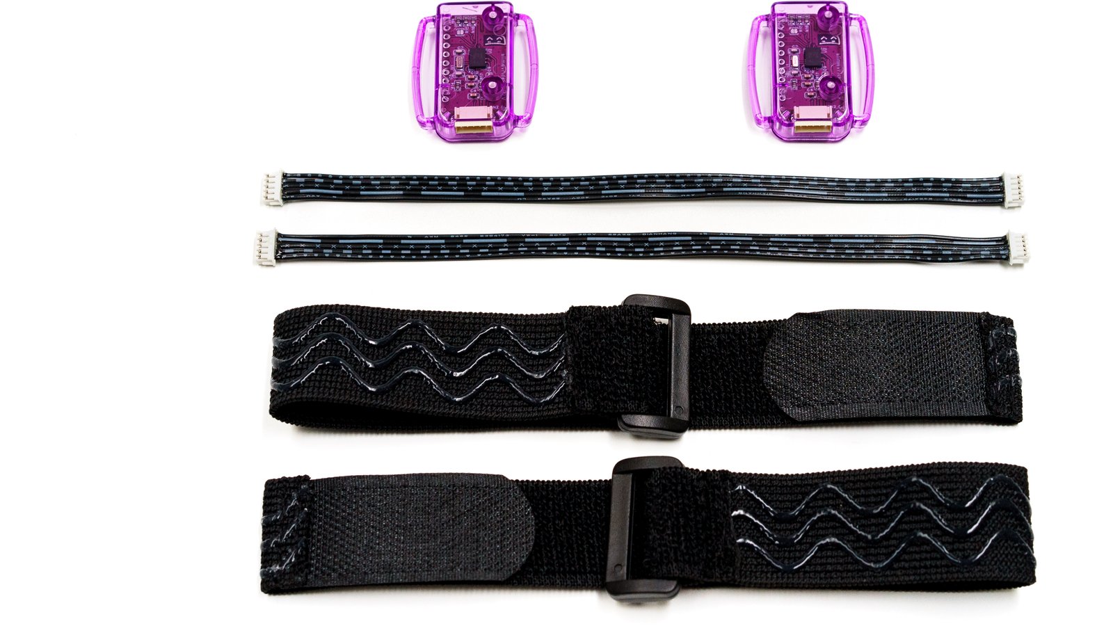Twelve SlimeVR trackers and four tracker extensions (translucent purple), enough to track the position and rotation of your waist (with better precision than the Lower-Body Set), your knees, your chest, your feet, and your elbows, with enough left over (with extra straps) to experiment with motion capture and other innovations. Includes two tracker extension cables, four torso straps (38 mm x 1000 mm), four thigh straps (38 mm x 500 mm), eight ankle/elbow straps (38 mm x 350 mm), four foot straps (25 mm x 300 mm), two narrow torso straps (25 mm x 1000 mm), two USB Type-C cable, two sets of stickers, and an instruction manual.