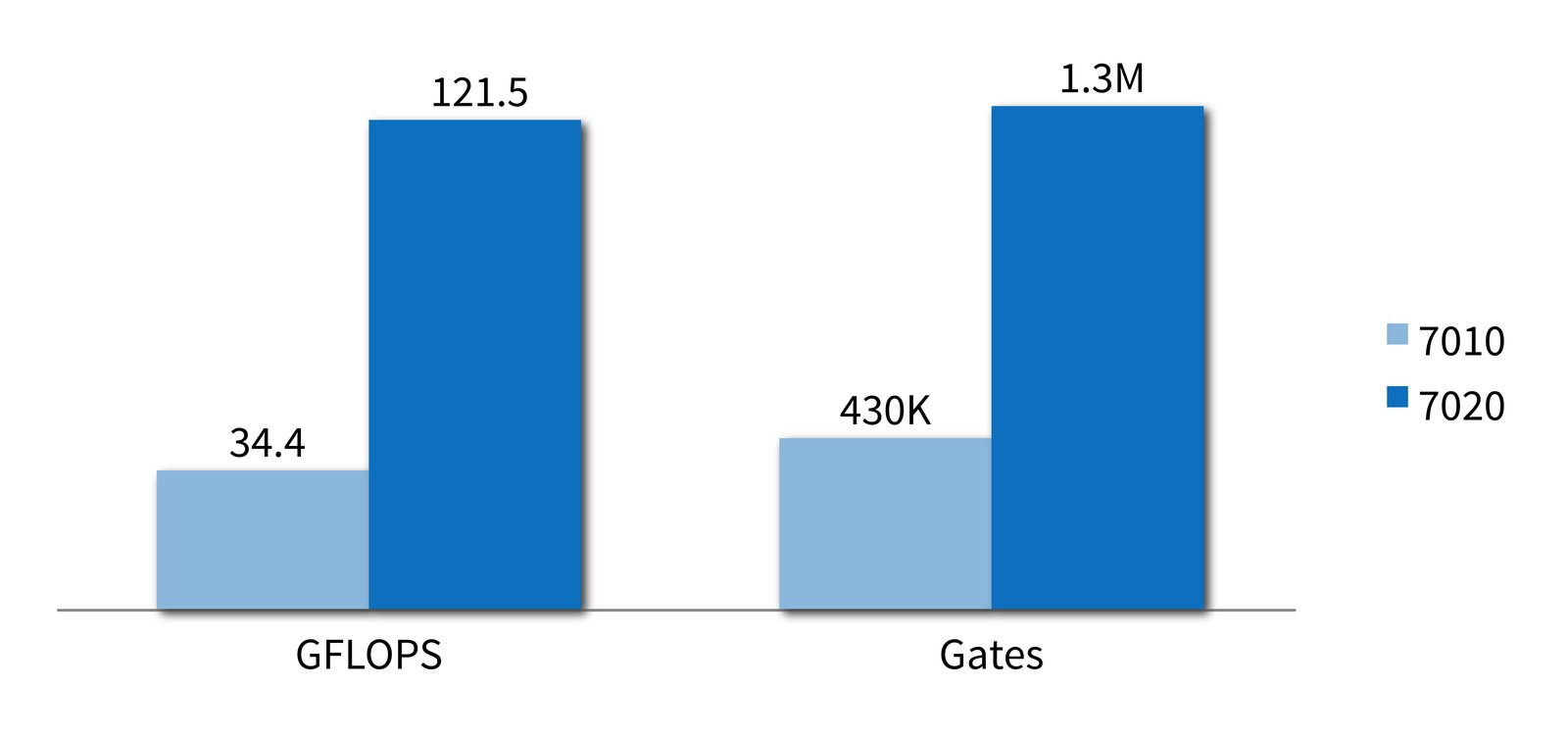 | DSP performance | 74 GMACs/31.8 GFLOPS@461 MHz | 276 GMACs/121.5 GFLOPS@599 MHz |