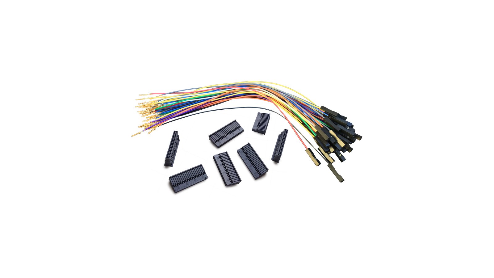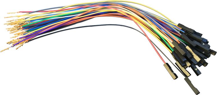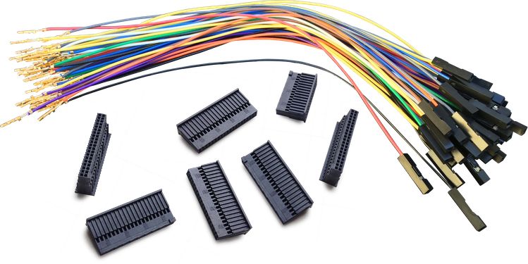 Note: jumpers only. Wires are approximately 7.5” long (19cm), and come with 0.1” female pins & housings installed on one end and crimped pins for installation into mating Samtec housings on the other.