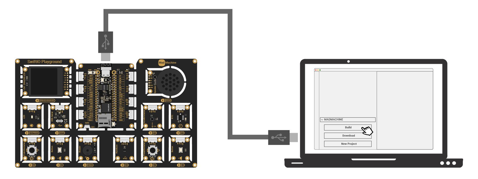 An all-in-one kit for Swift hardware programming, providing compact boards to effortlessly create interactive projects with 13 modules.