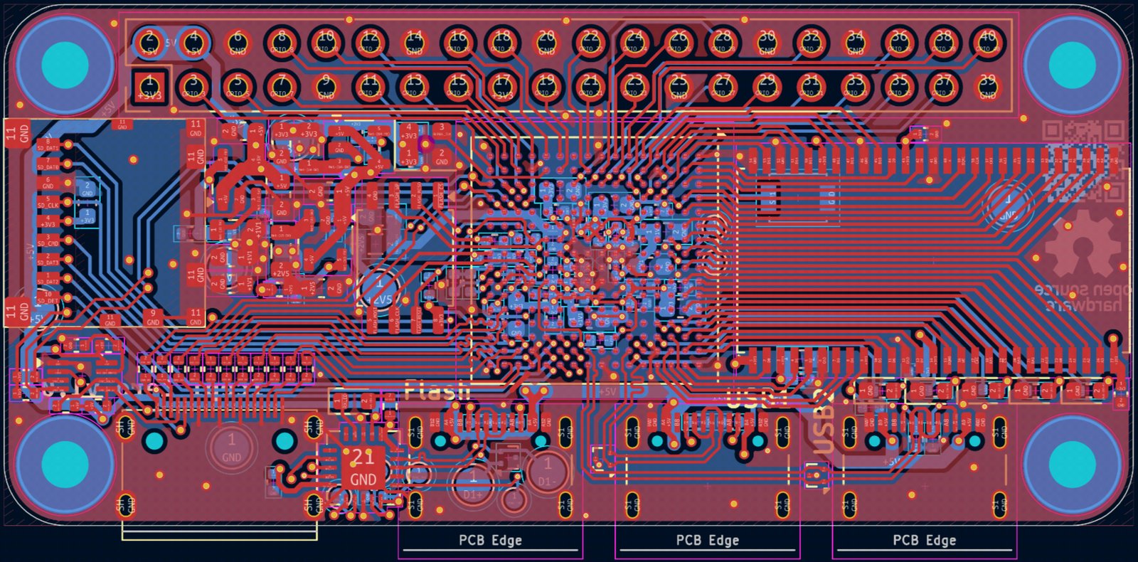 The first prototype that I made was actually vastly different from it’s current form: it had nothing to do with a Pi Zero form. The first design was just a small dev board carrying an ICE40.