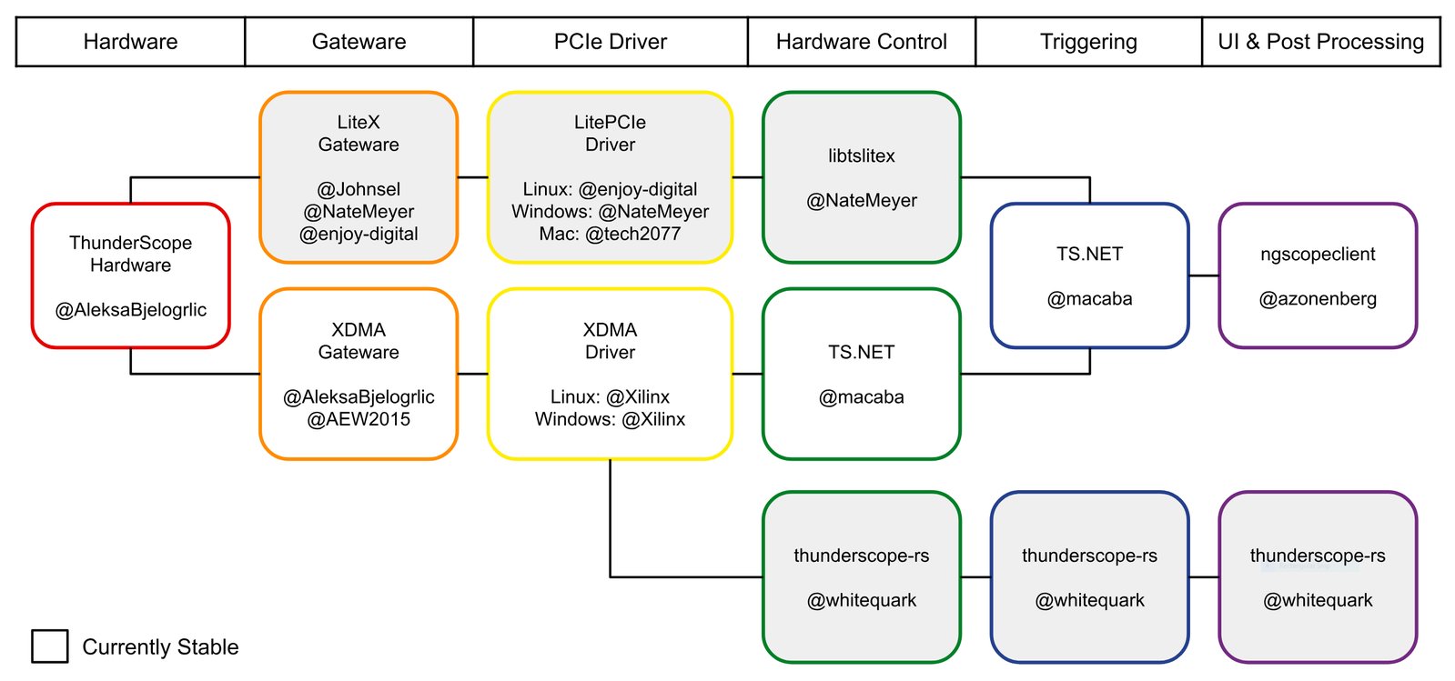 ThunderScope is the culmination of various projects with many different authors and repos, unified by the common goal of making excellent open source test equipment.