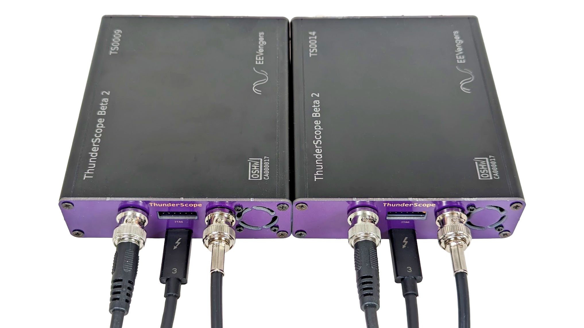 If you need more than four channels, we are also working on a feature where you can pair multiple ThunderScopes using the clock and sync connections to simultaneously measure as many channels as your computer can handle.