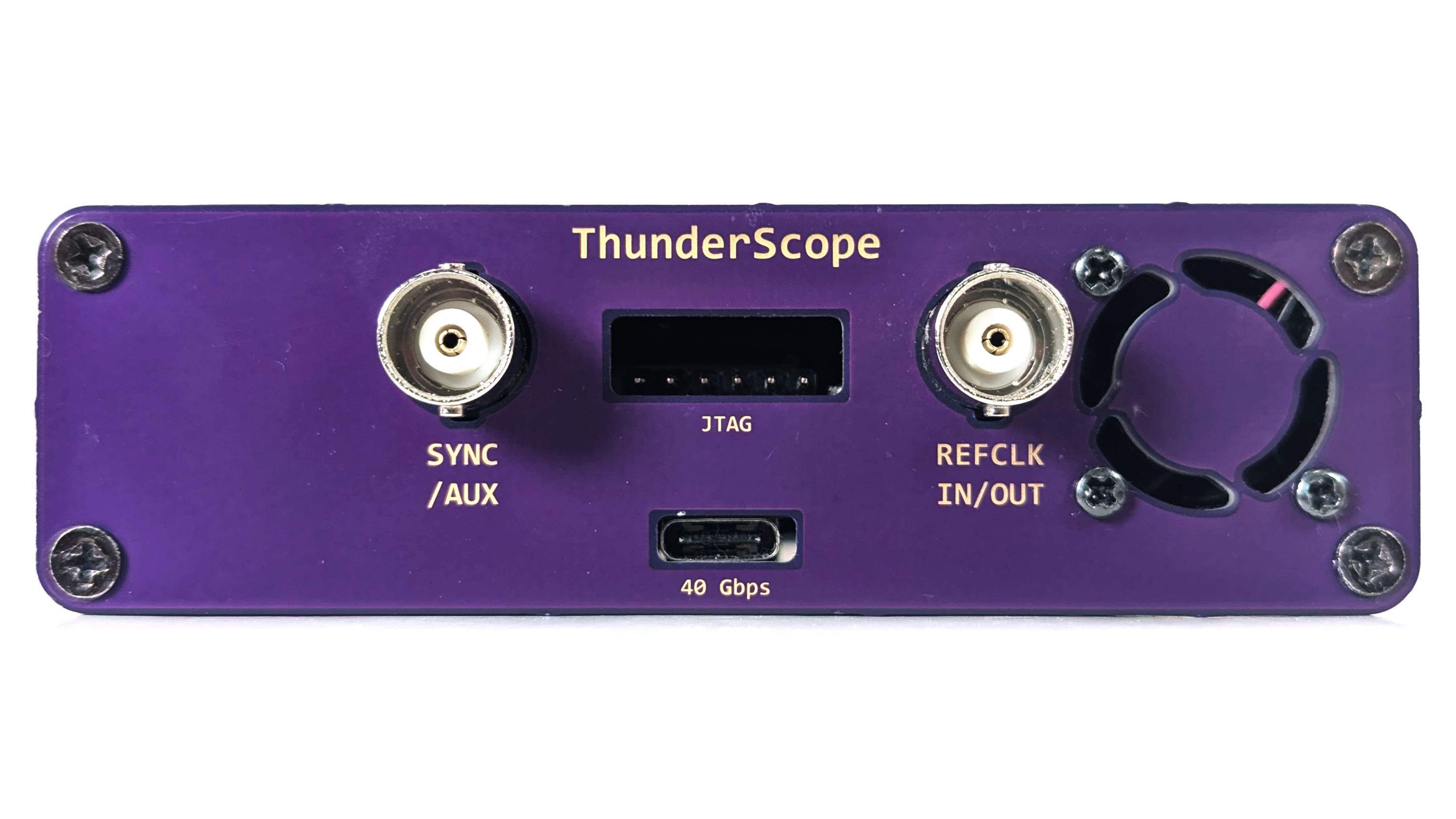 ThunderScope is a re-imagining of how test equipment is designed and used. The hardware focuses on the most important aspect of an oscilloscope - the analog frontend. Traditional scopes have to split their budget between the analog frontend and support components such as a small screen, underpowered microprocessor, and large chassis. ThunderScope takes a different approach: A no-compromises analog frontend that connects to your computer over the fastest available interfaces. Unlike any other scope that handles processing on device, this change in approach allows ThunderScope to use your computer to its fullest potential. This makes ThunderScope the only scope that will get better every time you upgrade your computer.