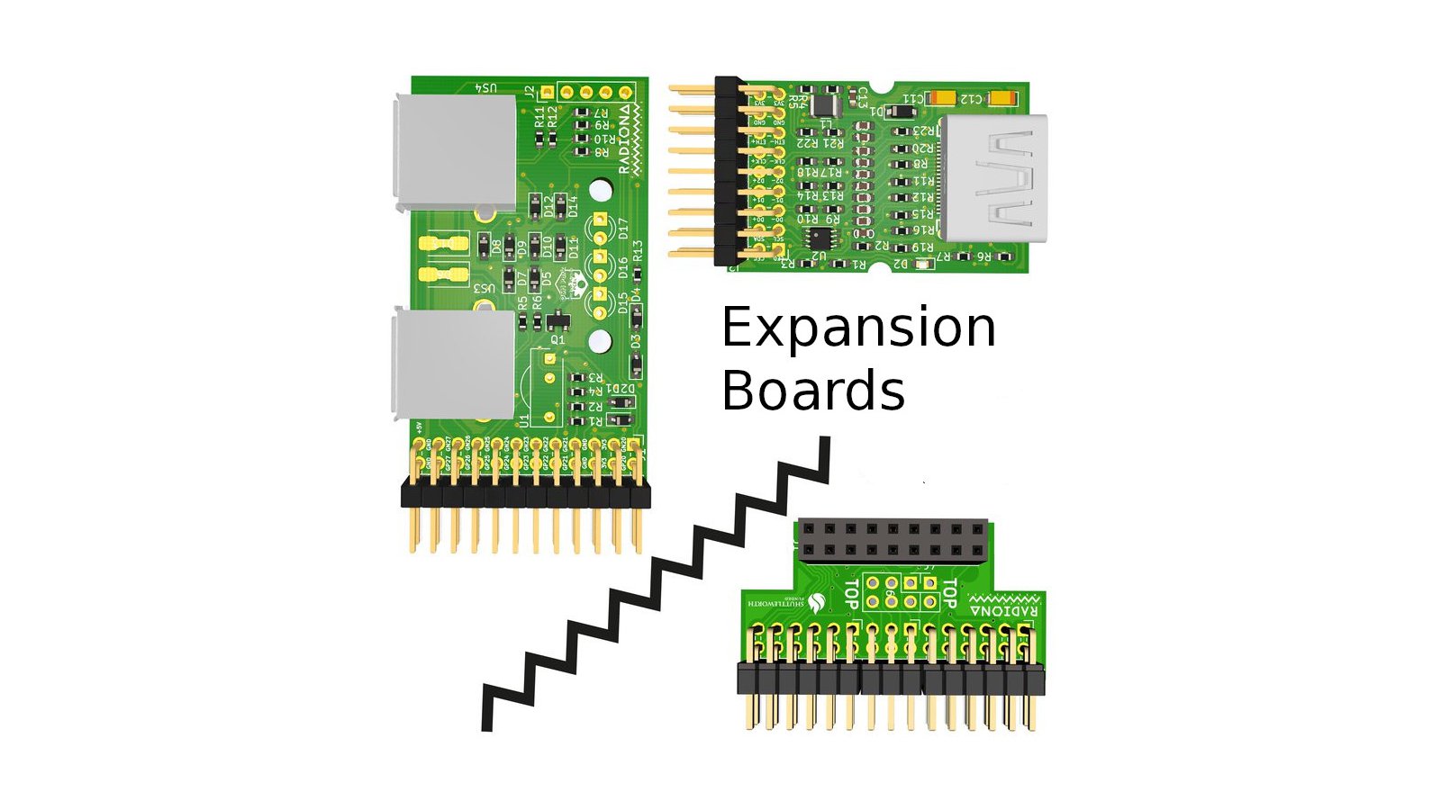 A set of three expansion boards for ULX3S: one dual-USB board with support for IR send and receive, one Digital Video board for GPDI input or as a second GPDI output, and one OV7670 camera connector.
