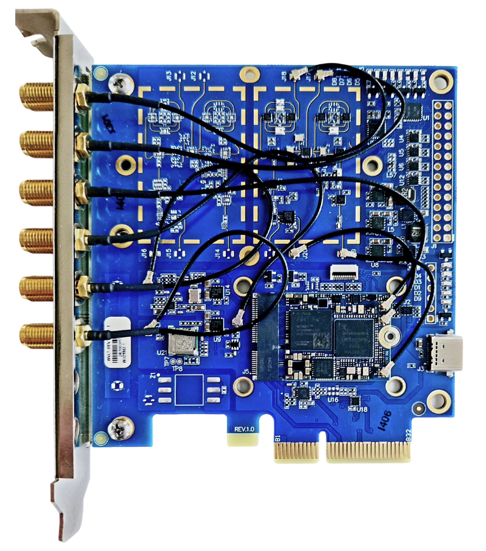 You can also connect to uSDR natively, from a Linux 5.4+ host, through an PCIe interface. To do so, you will need to compile and load our kernel driver, and the USB interface will become inaccessible. (If you connect through USB, you can operate uSDR without additional drivers.)