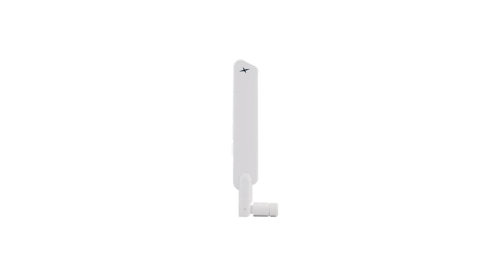 A high-efficiency Taoglas TG.55.8113W tilt/swivel monopole whip antenna with an SMA connector covering 600 MHz - 6 GHz, including 4G and 5G bands.