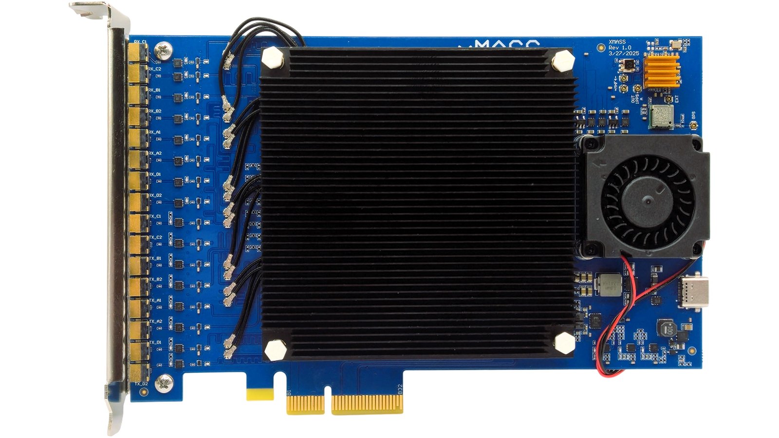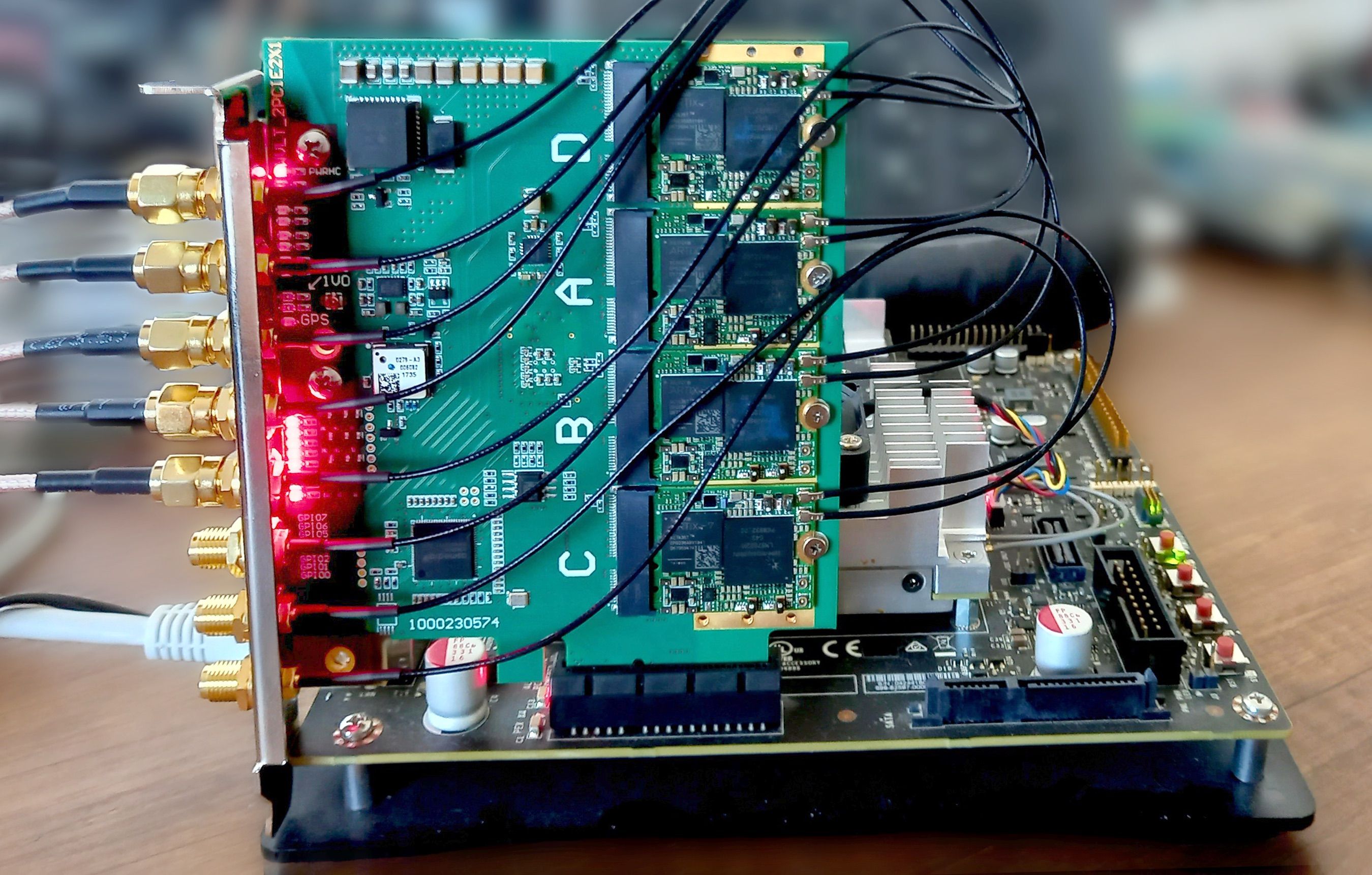"The board comes in a modular PCIe form factor, with 4x FPGAs, and GPS/PPS clock sync input. The system is designed in mind for 4G/5G applications but should be useful for other applications too."