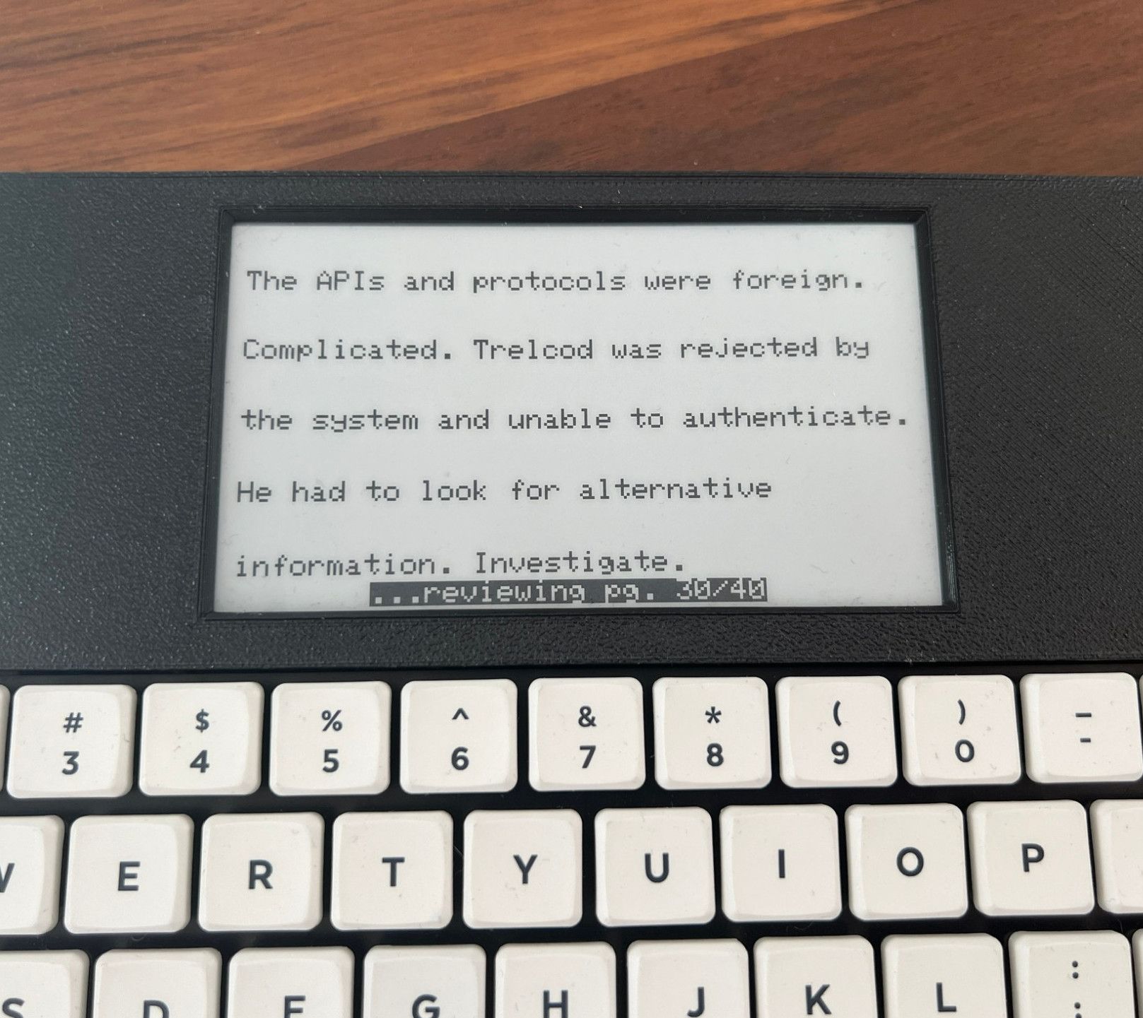 The good news: Zerowriter Ink is almost ready for production. Most of the work left is finalizing the enclosure design details for our initial production run. Then we’ll be finalizing the details of our custom Inkplate, and giving the other internals a final pass. Prototype units are already in the hands of a few writers and developers.